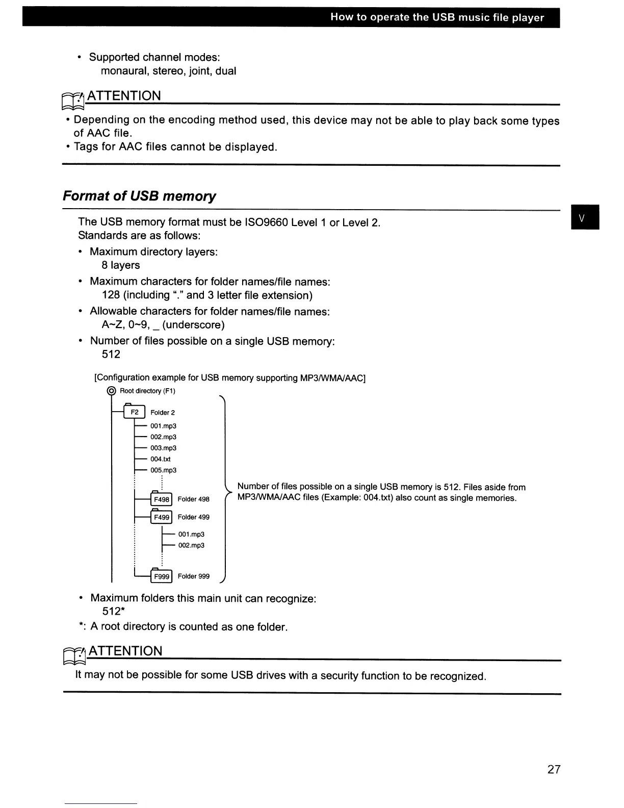 • Maximum folders this main unit can recognize: