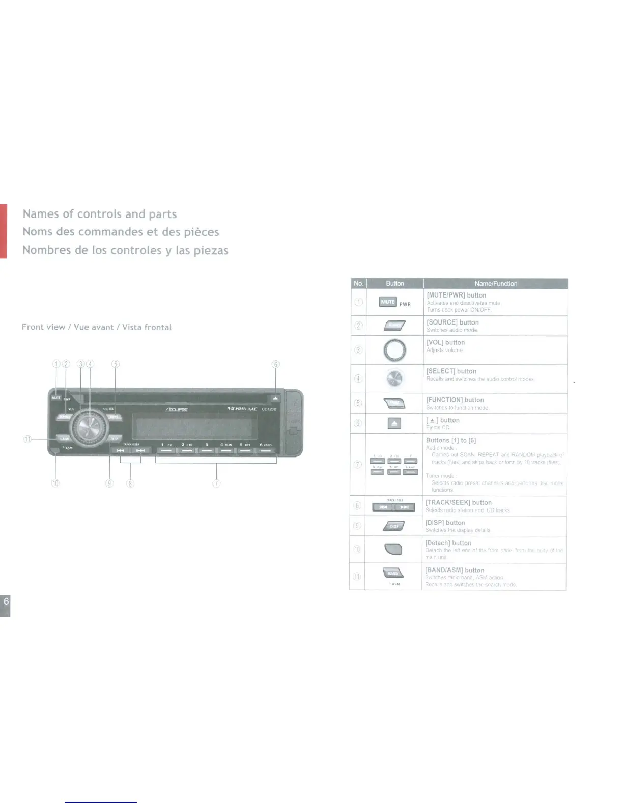 Eclipse CD1200 - Noms des Commandes Et des Pieces; Nombres de Los Controles y las Piezas; Names of Cortrols and Parts