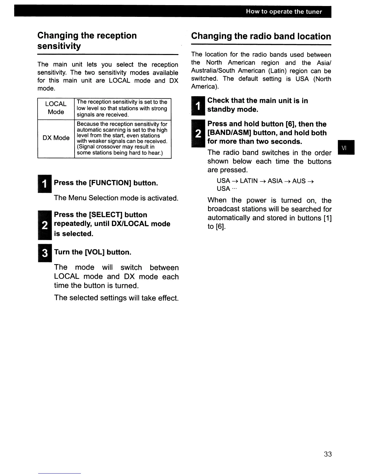 The main unit lets you select the reception