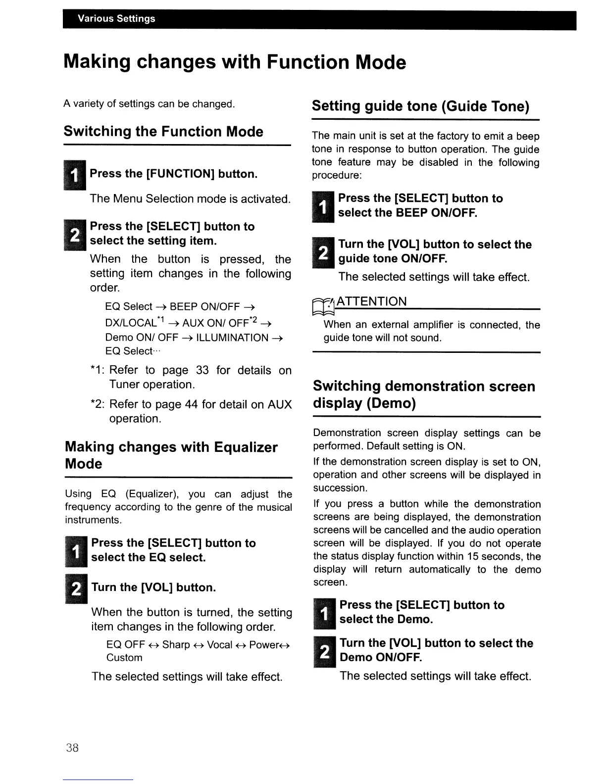tone in response to button operation. The guide