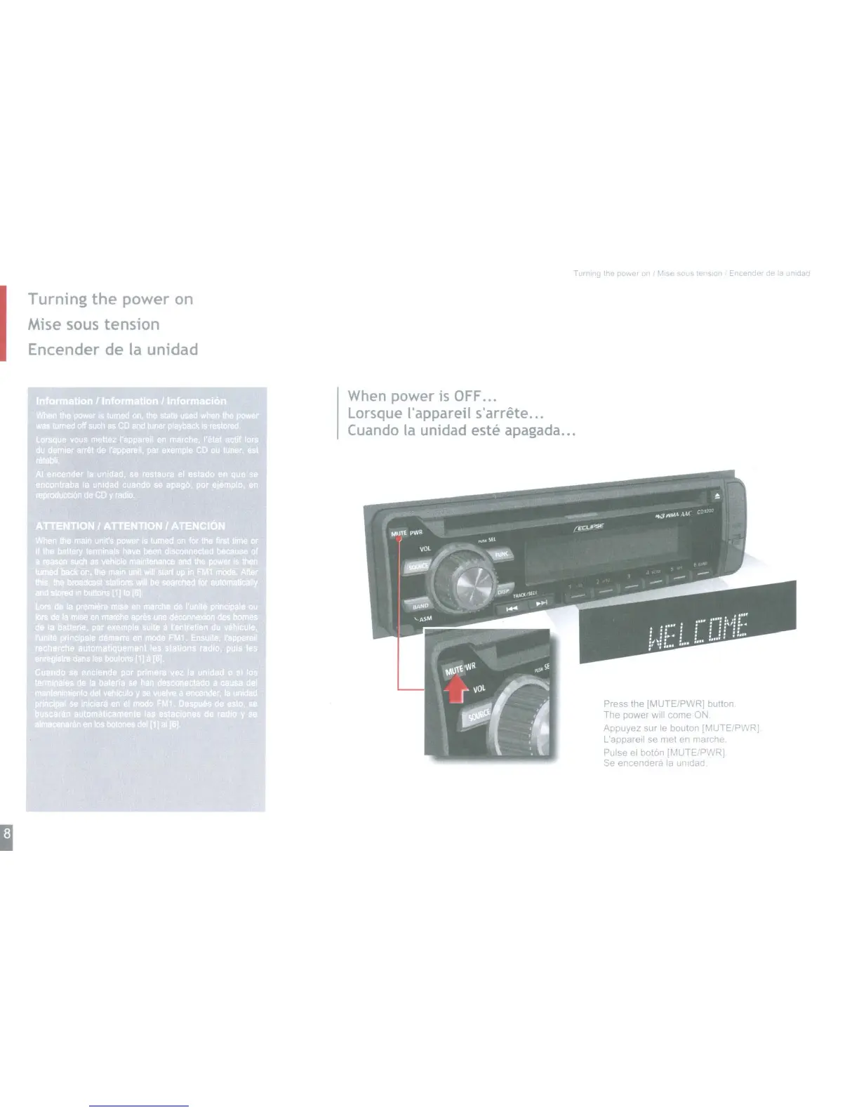 Eclipse CD1200 - Turning the Power on; Mise Sous Tens; Encender de la Urldad