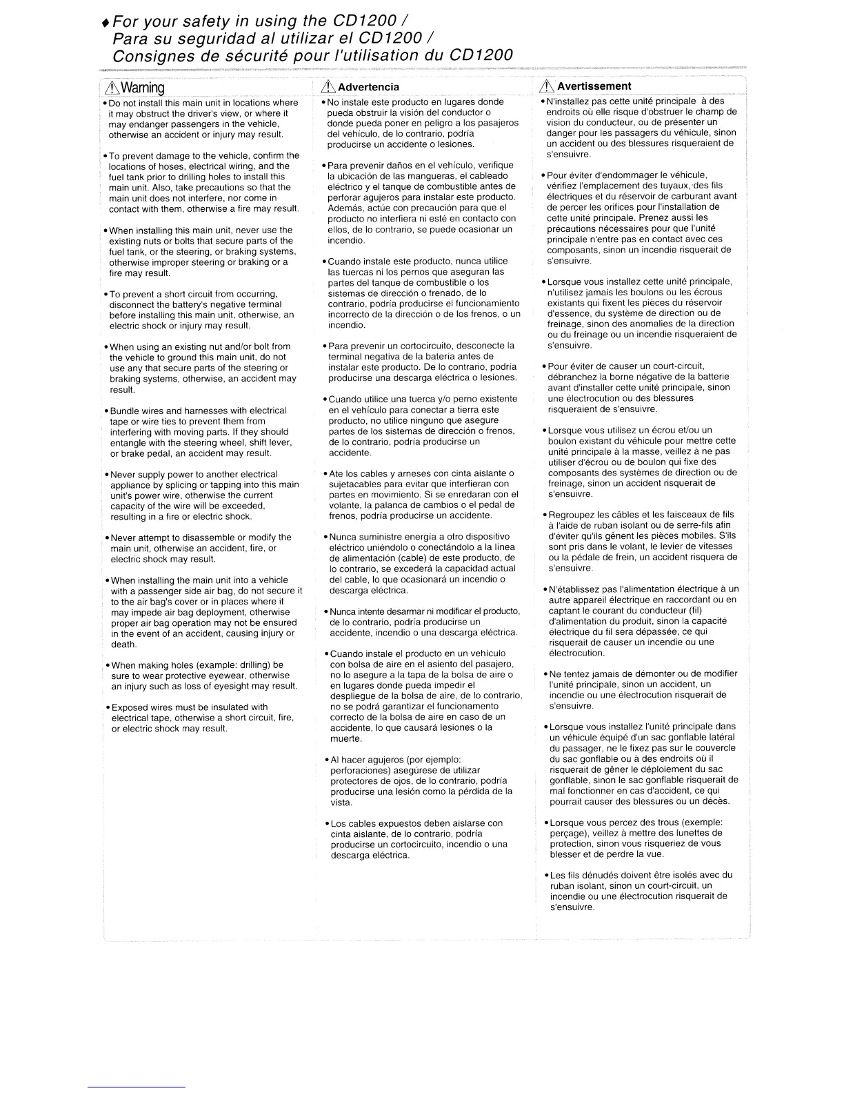 • When installing the main unit into a vehicle