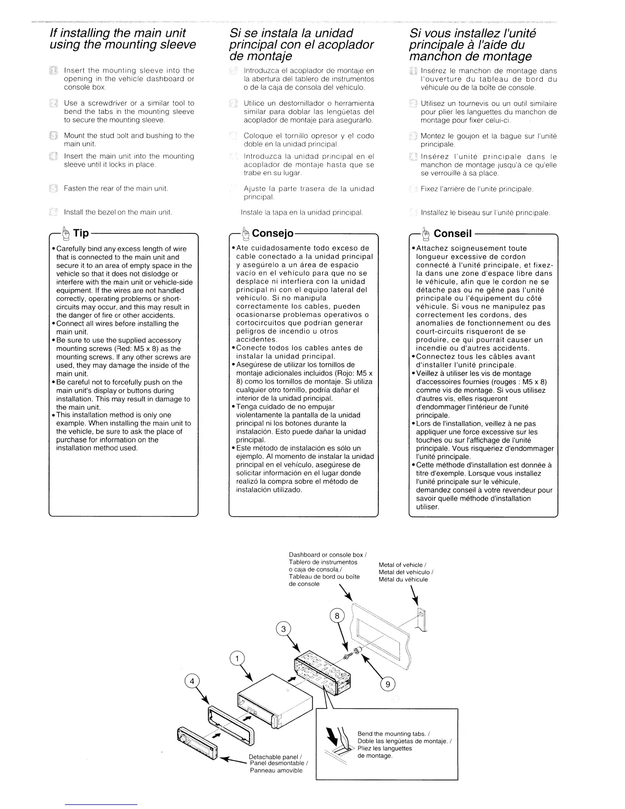 interfere with the main unit or vehicle-side