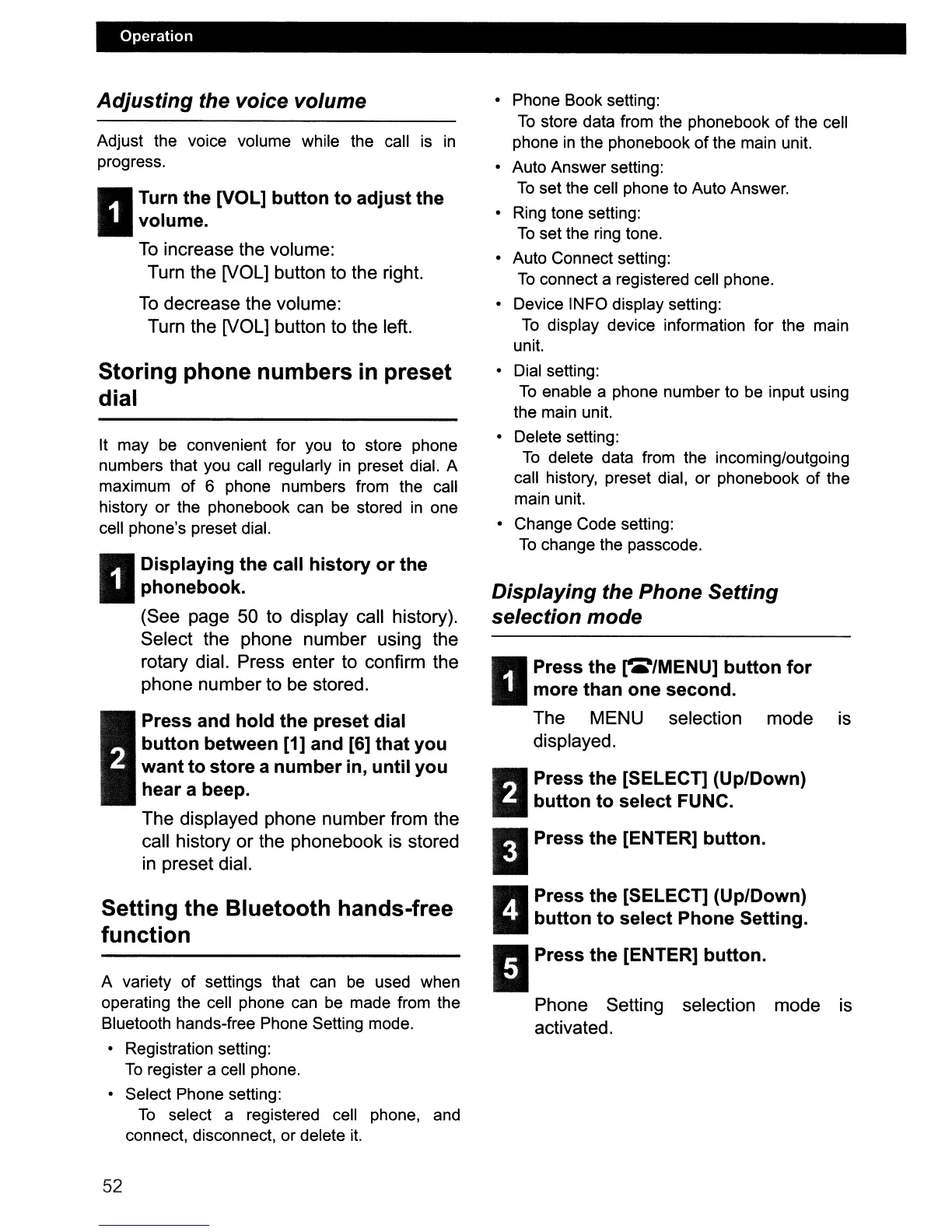 Bluetooth hands-free Phone Setting mode.