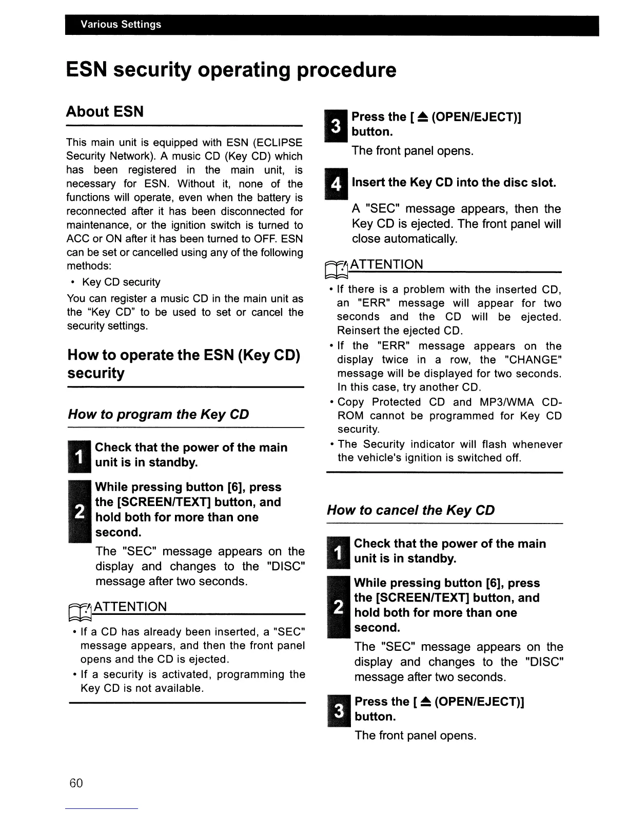 How to operate the ESN (Key CD)