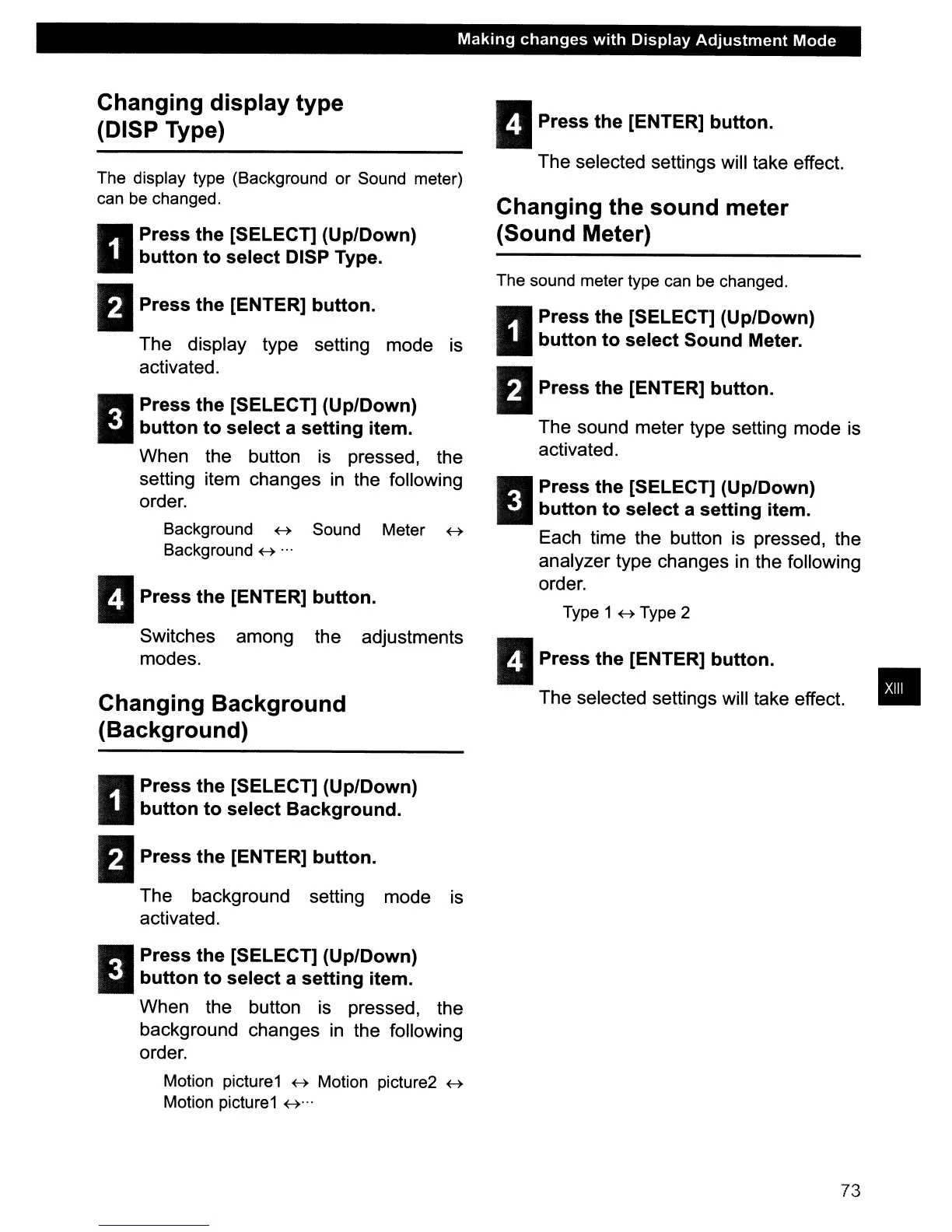The display type (Background or Sound meter)