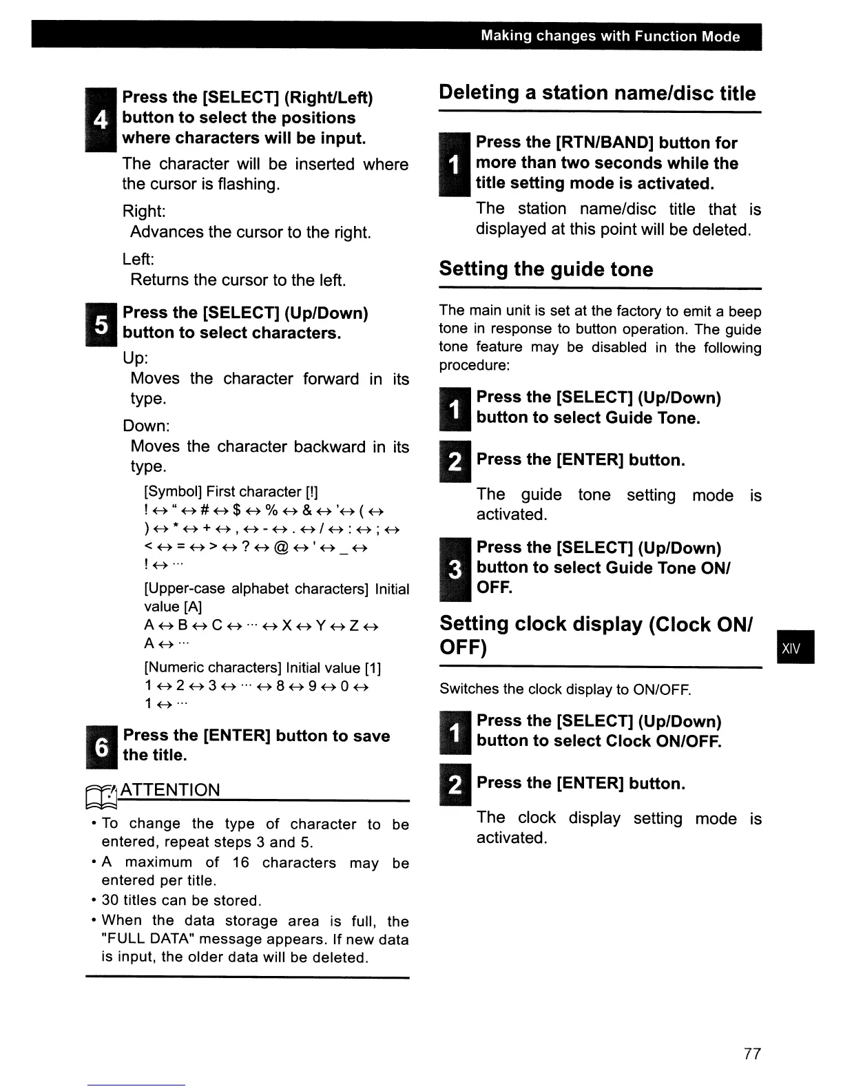 Deleting a station name/disc title