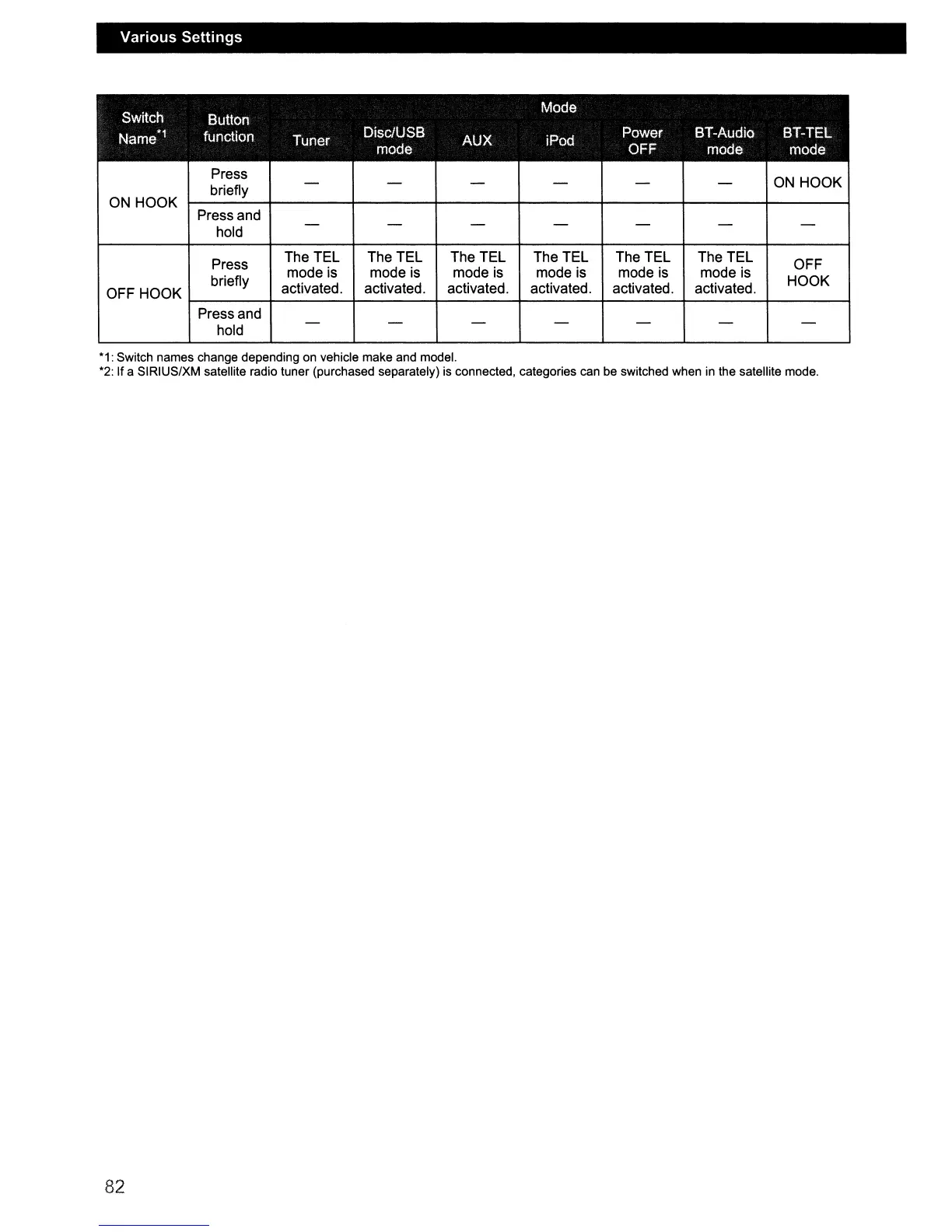 *2: If a SIRIUS/XM satellite radio tuner (purchased separately) is connected, categories can be switched when in the satellite mode.