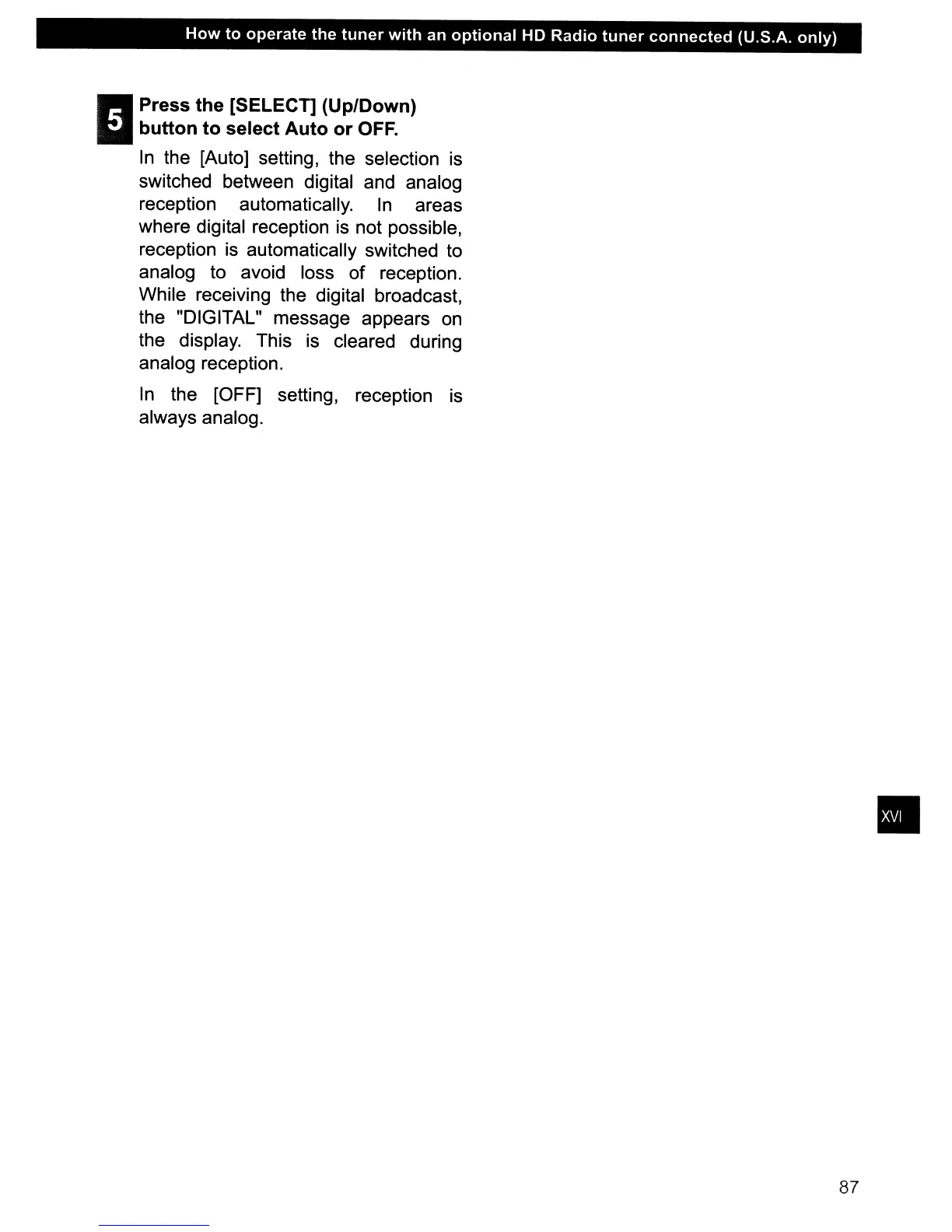 the [OFF] setting, reception