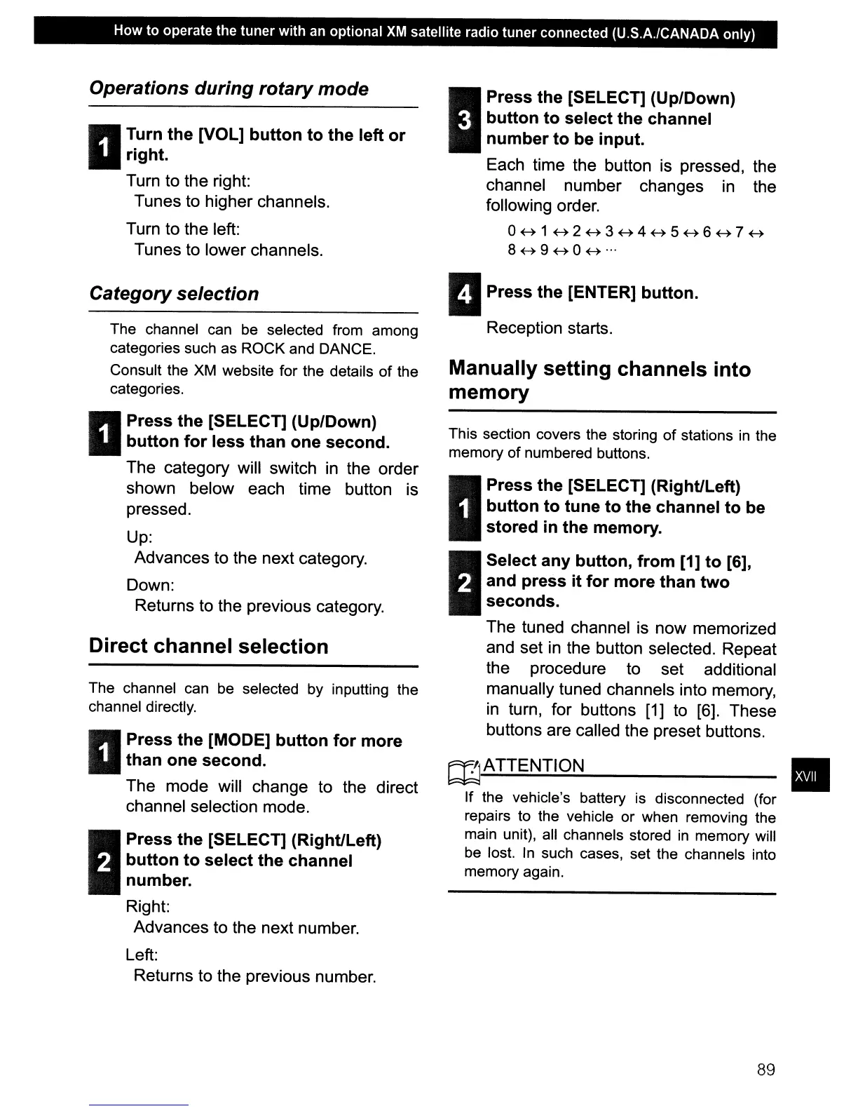 satellite radio tuner connected (U.S.A.lCANADA only)