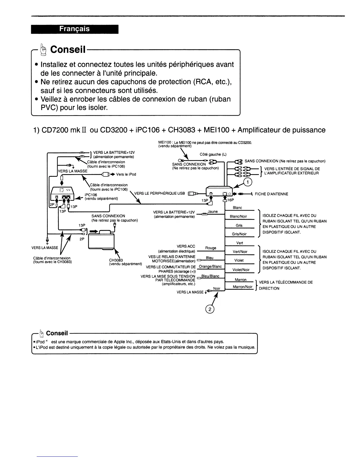 • L'iPod est destine uniquement ala copie legale ou autorisee par Ie proprietaire des droits. Ne volez pas la musique.