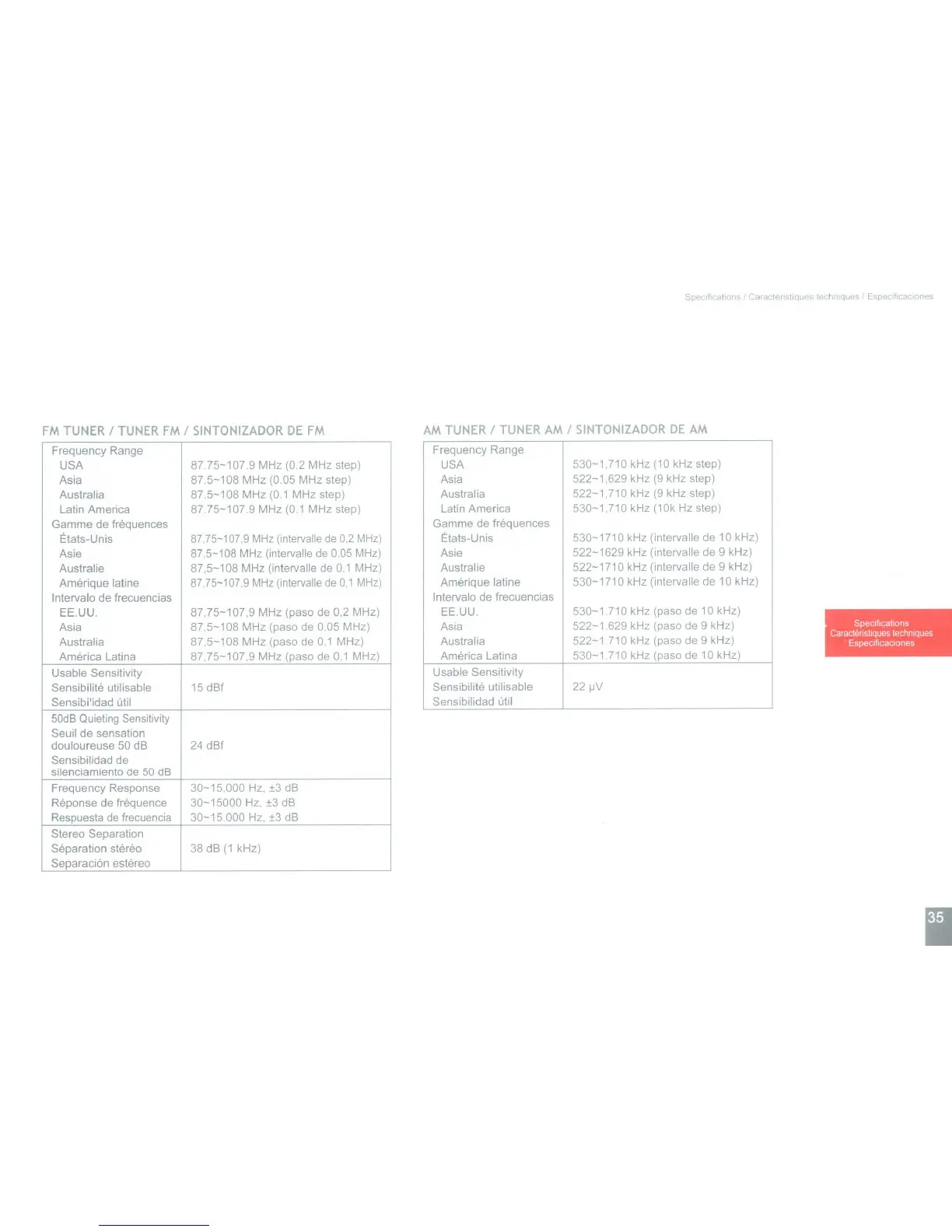 Asia 87,5-108 MHz (paso de 0,05 MHz)
