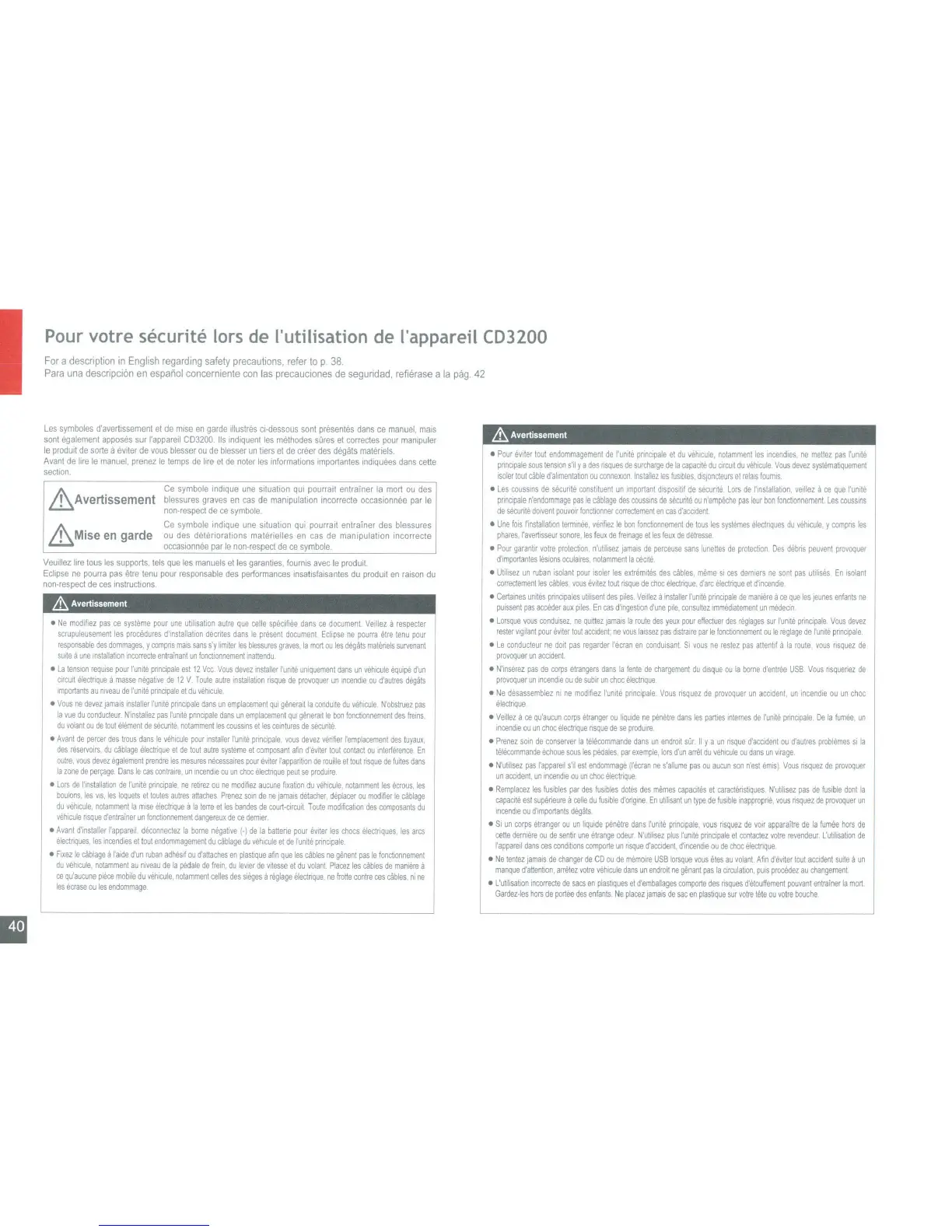 Pour votre securite lors de I'utilisation