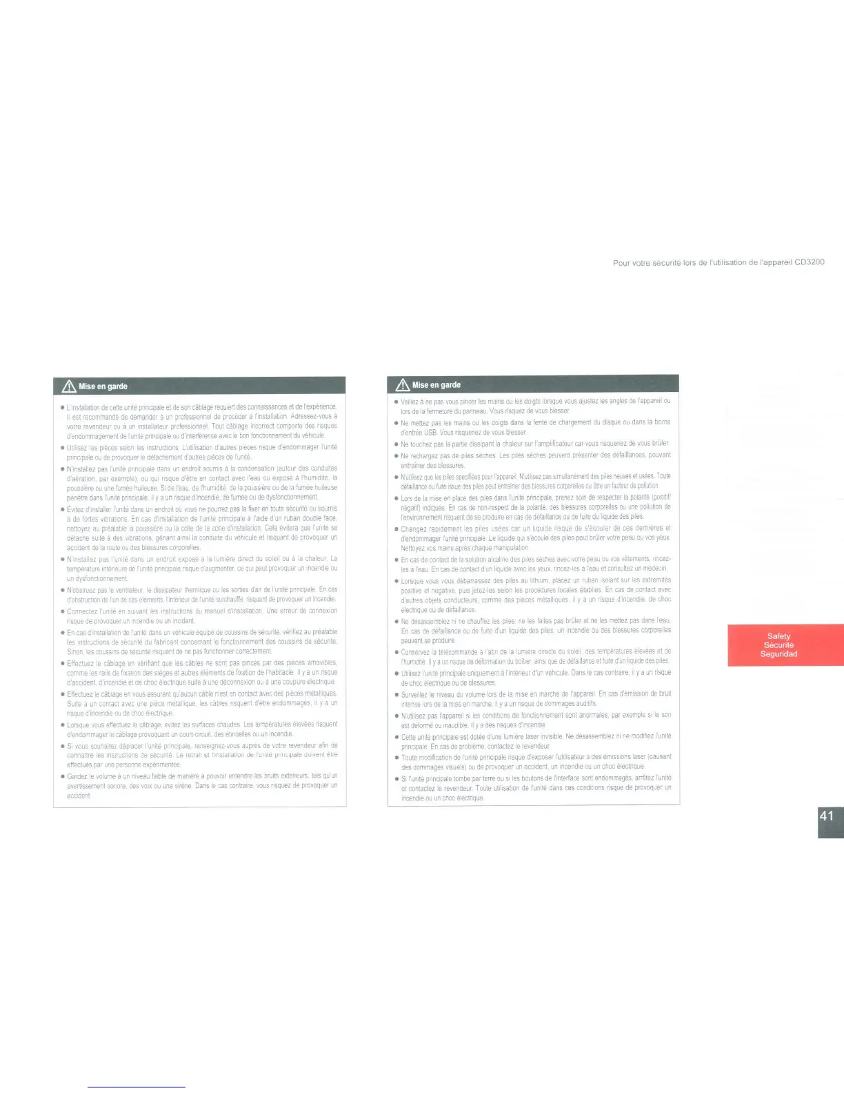 Pour votre secunte lors de I'utiltsation de l'apparell CD3200