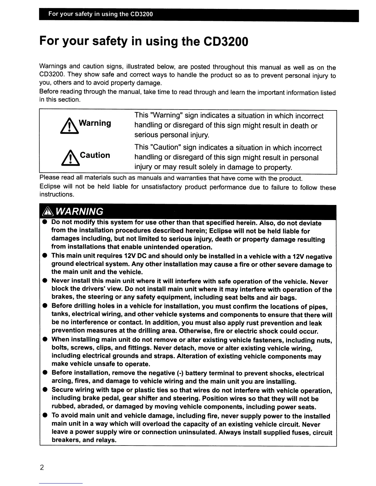 CD3200. They show safe and correct ways to handle the product so as to prevent personal injury to