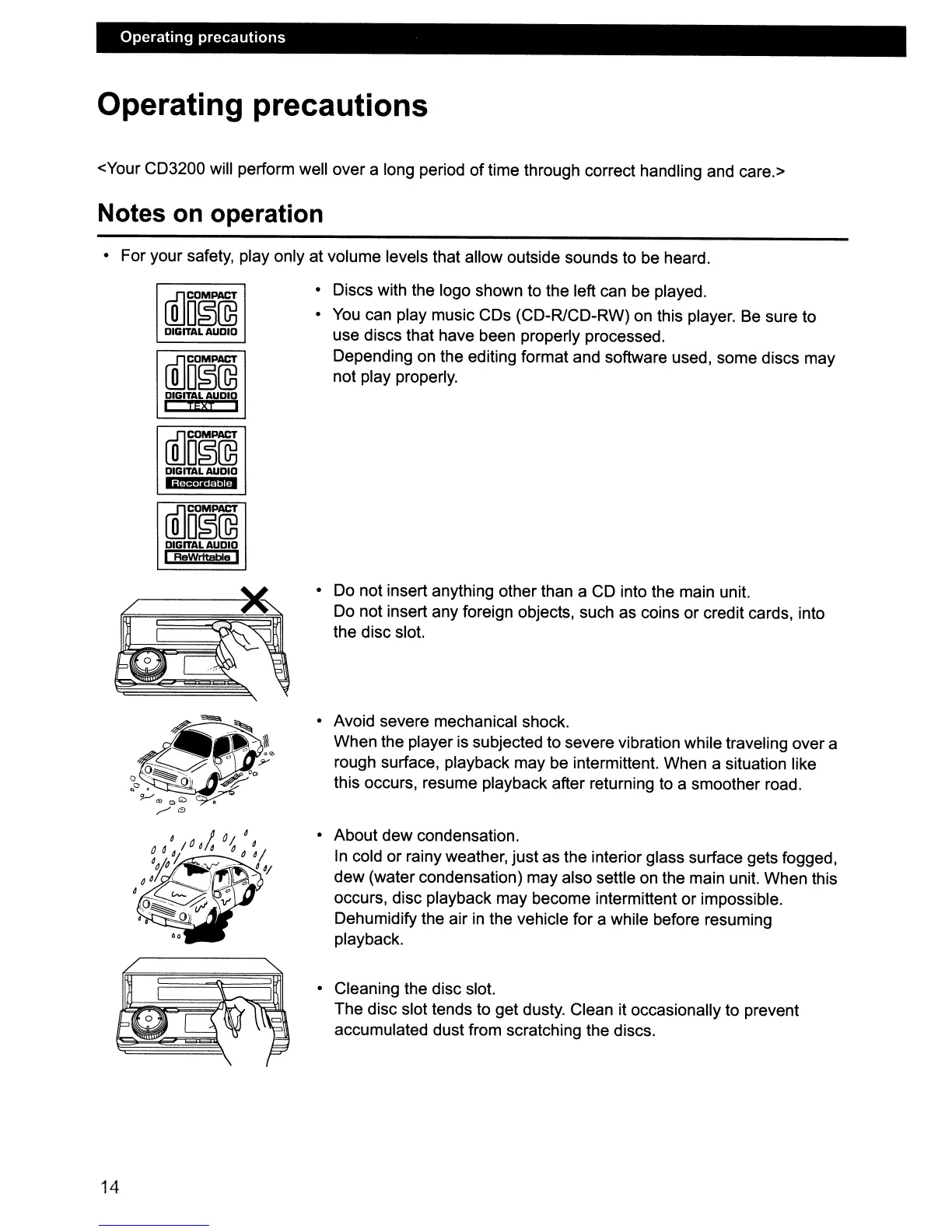 • You can play music CDs (CD-RlCD-RW) on this player. Be sure to