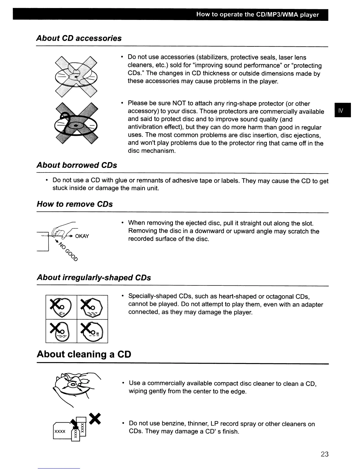 adhesive tape or labels. They may cause the CD to get
