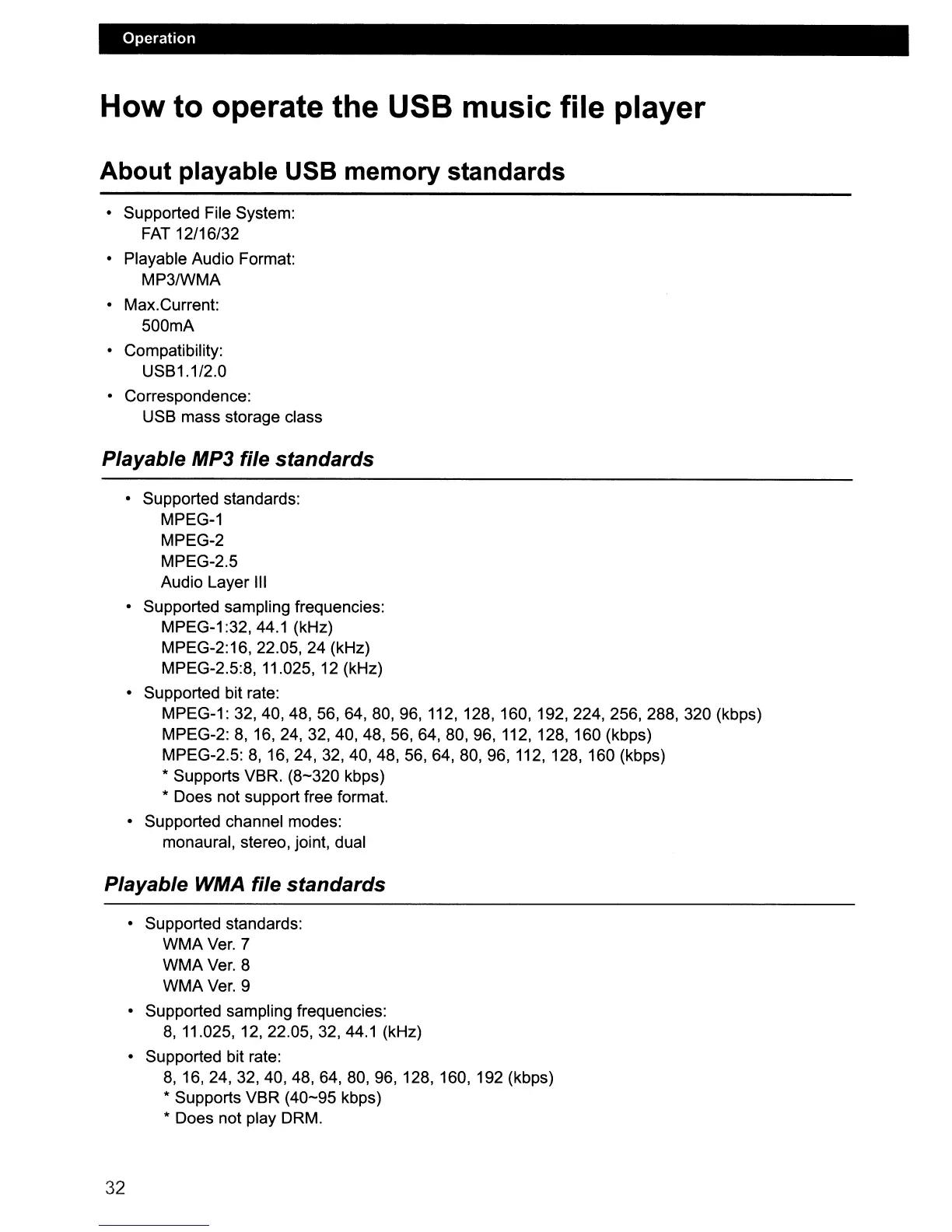 How to operate the USB music file player