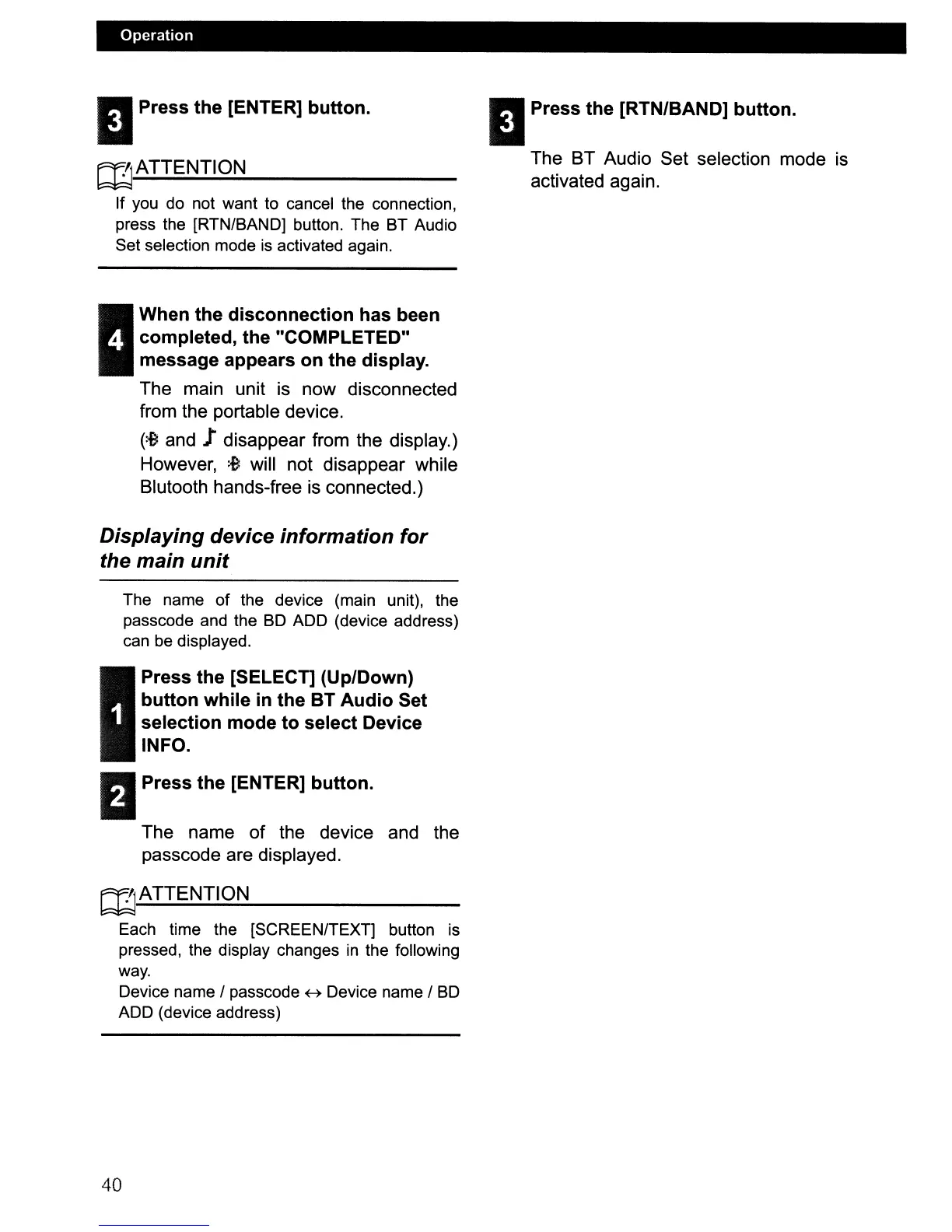 press the [RTN/BAND] button. The BT Audio