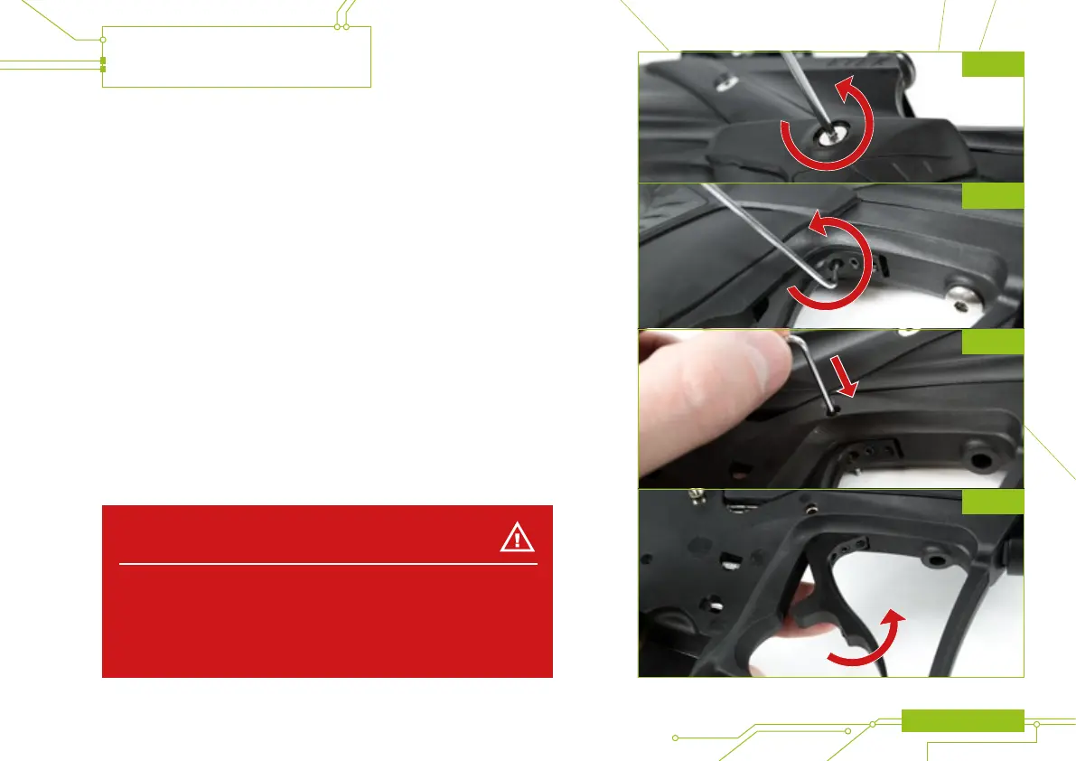 With a 1/16” hex key, loosen the trigger pin retaining screw (see gure 28B).