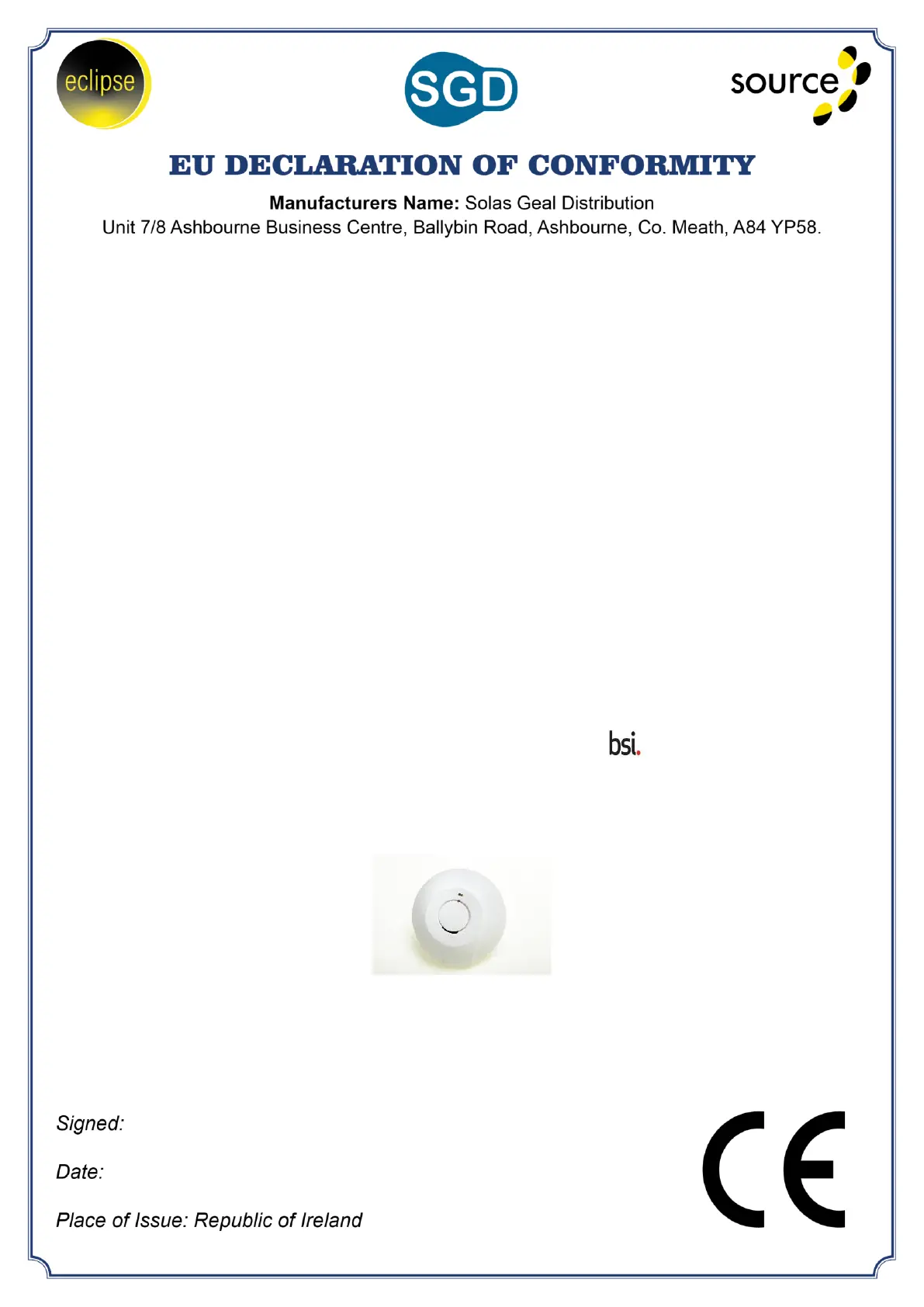 This declaration of conformity is issued under the sole responsibility of the manufacturer.