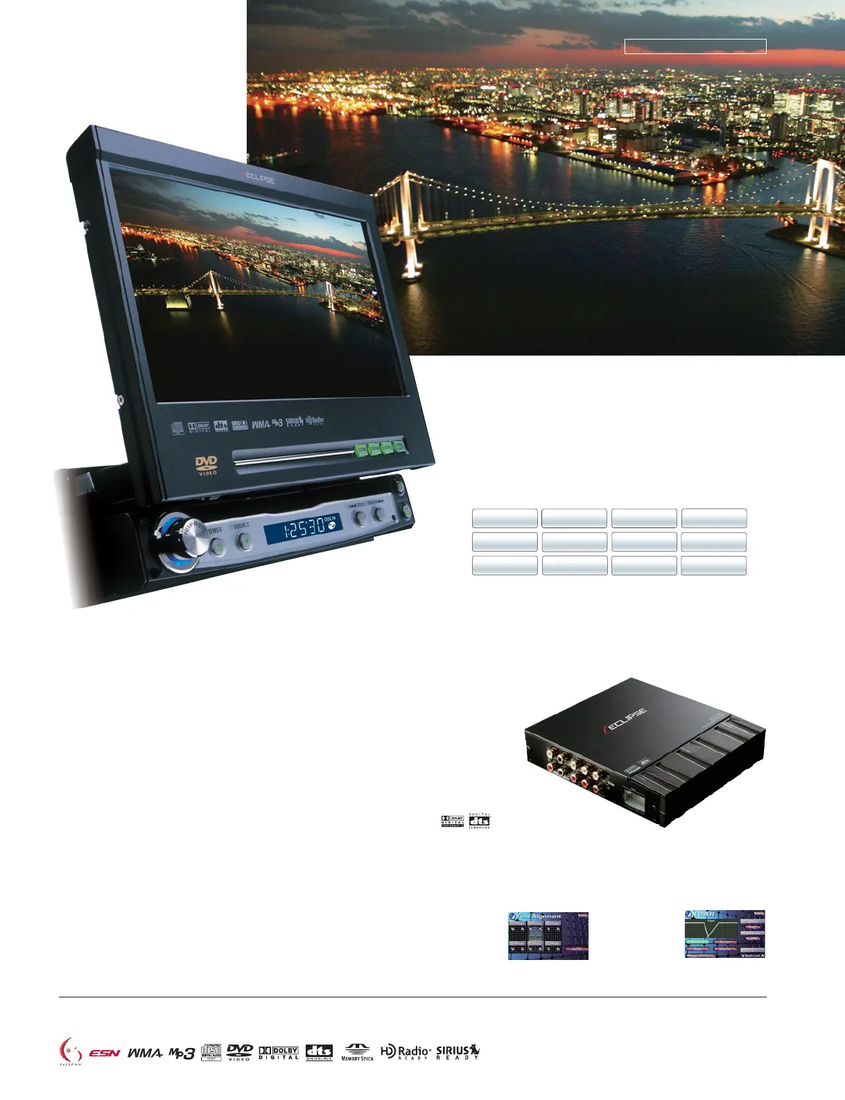 • 7˝ wide display • Touch control • MOSFET 50W ✕ 4 • 5.1 ch. SOUND (option) • E-iSERV connectivity (option) • Dual color illumination • FM/AM • Advanced 24-bit Δ∑ DAC • 7-band PEQ • Time alignment