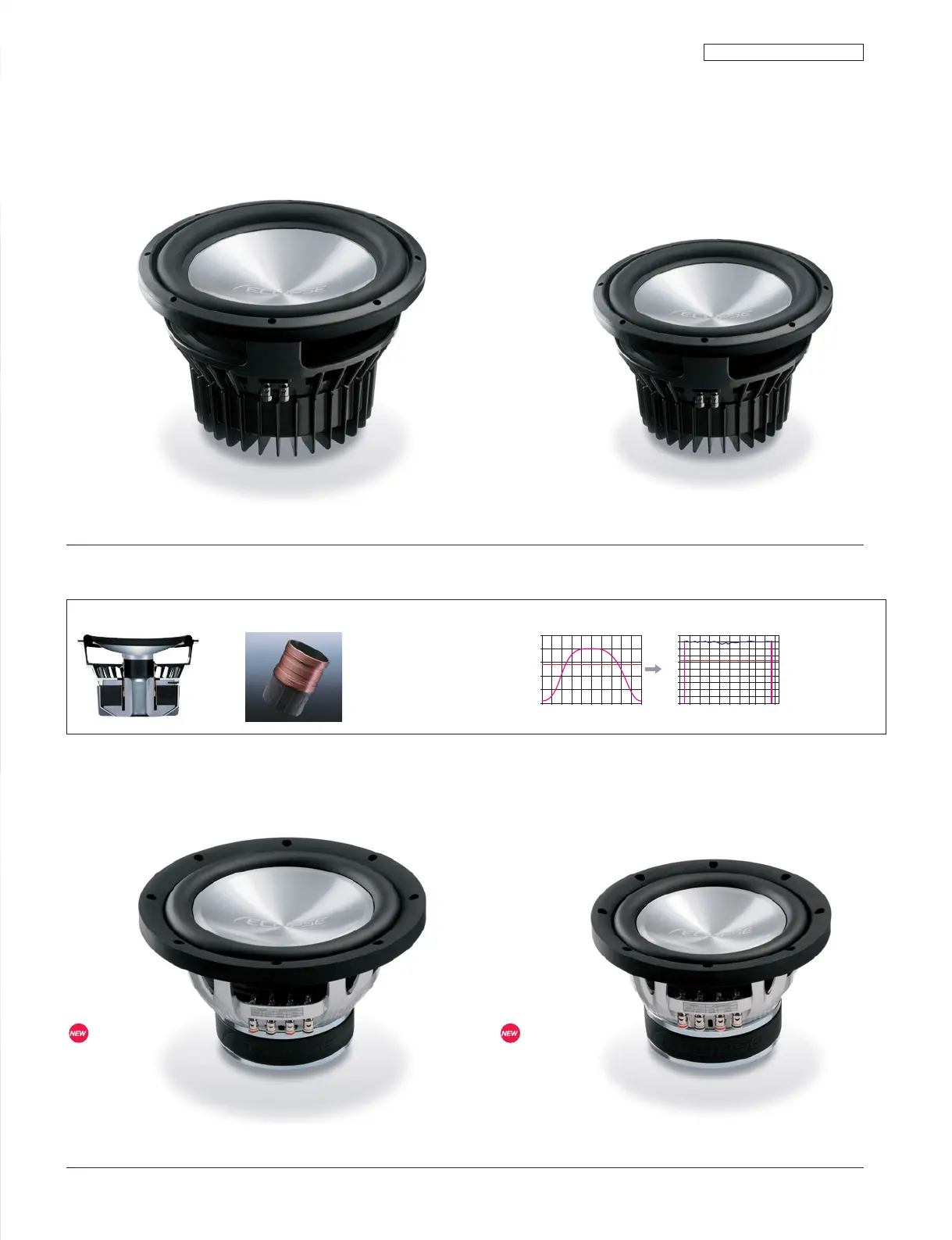 • RMS power handling: 670W/625W • Max. power handling: 2000W/1900W • Linear transducer technology • Solid aluminum cone heat sink • Single 4Ω compound linear voice