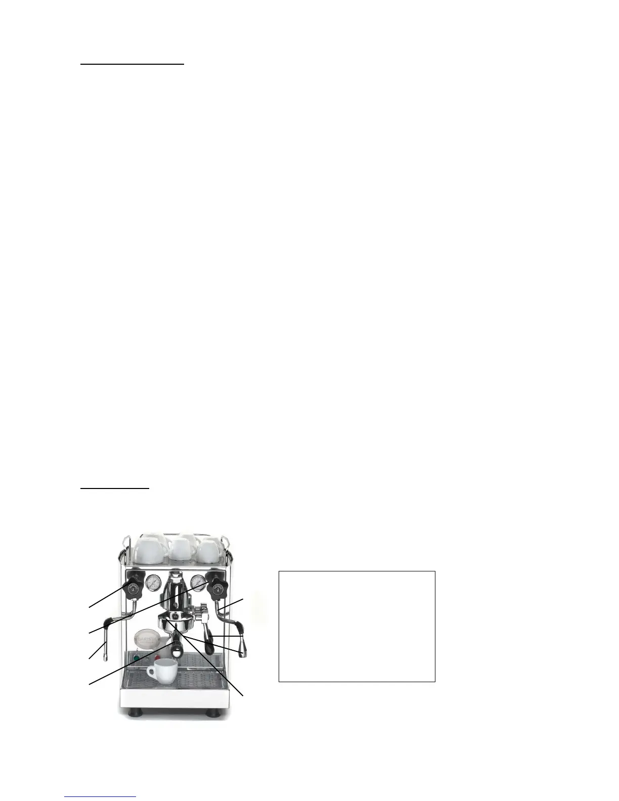 The BARISTA must be used for the preparation of coffee, hot water and steam only. The machine is not intended for