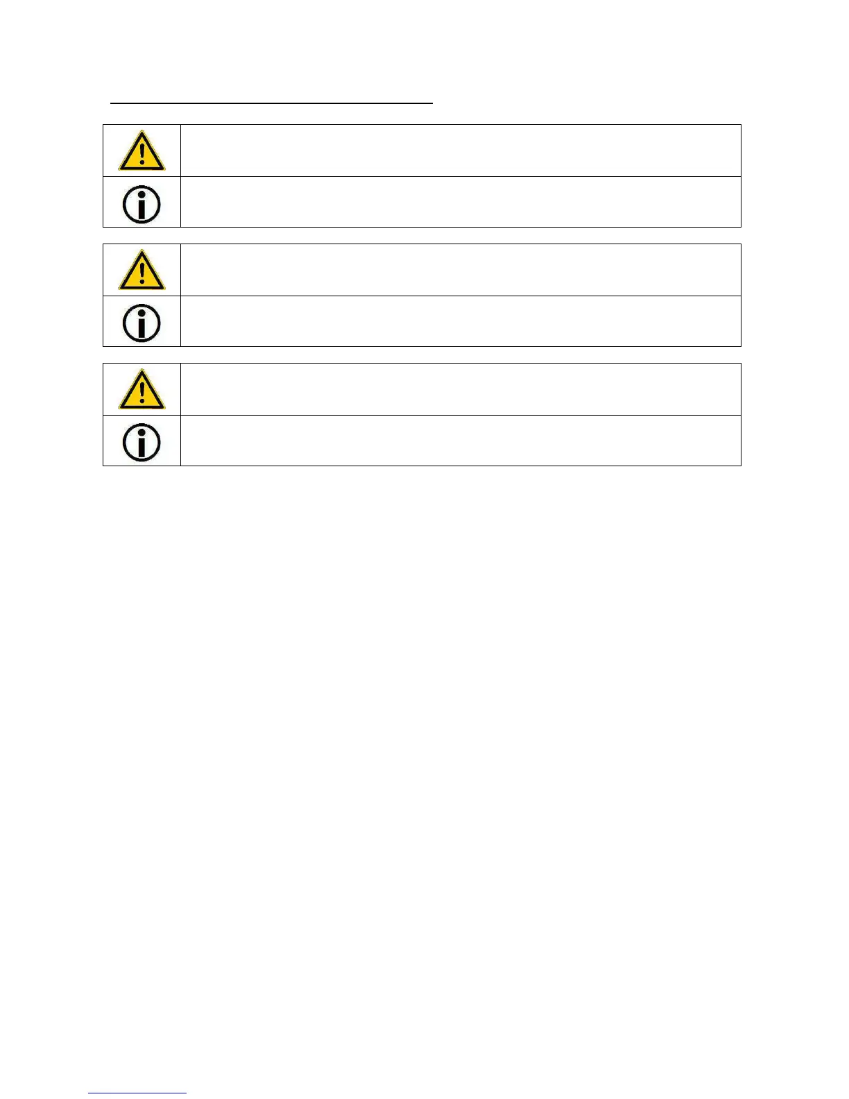 Caution! Important notices on safety for the user. Pay attention to these notices to avoid injuries.