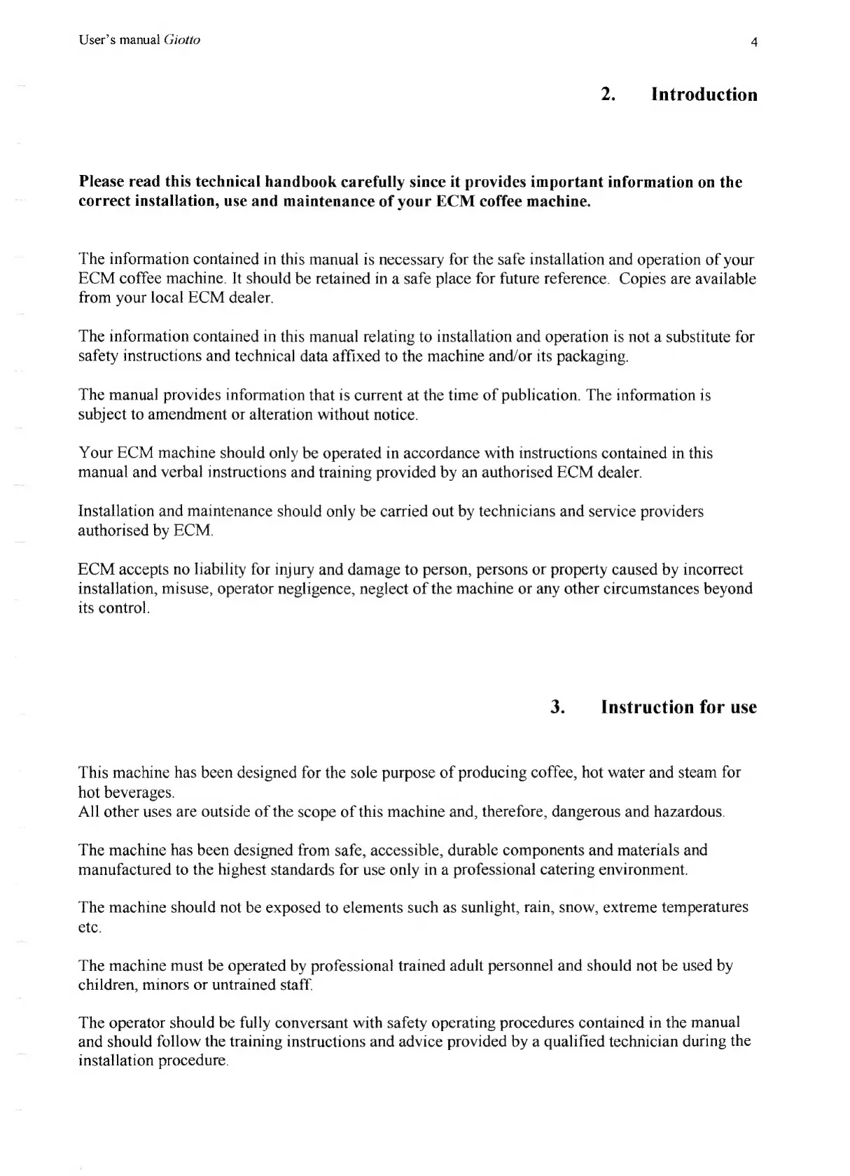 ECM Giotto - Introduction; Instruction for Use