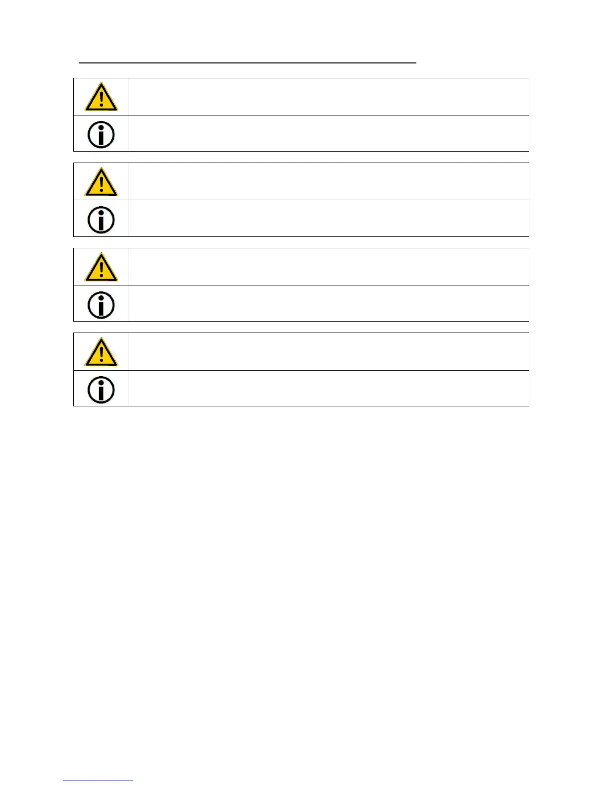 Caution! Important notices on safety for the user. Pay attention to these notices to avoid injuries.