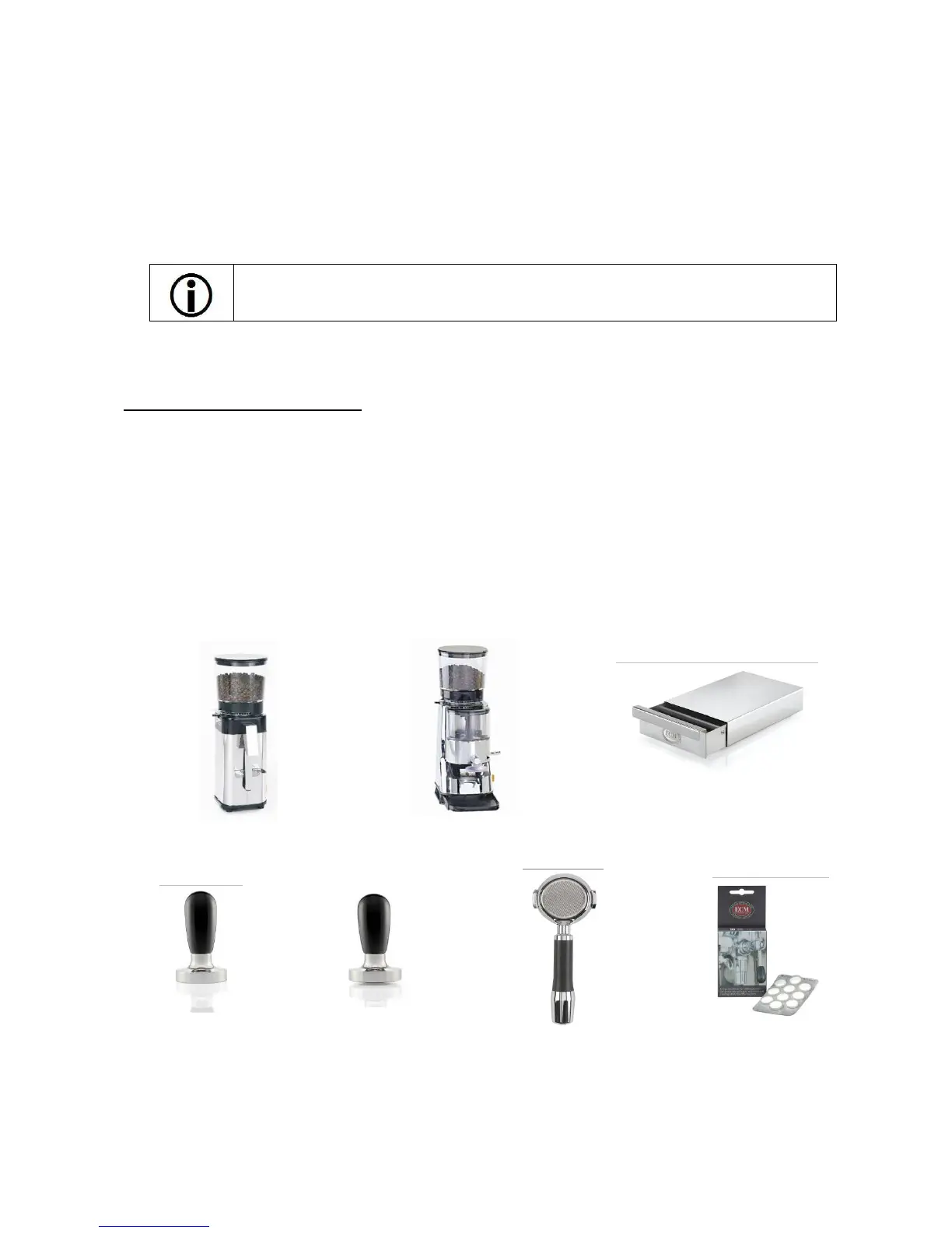 • Descaling powder for regular prophylactic descaling of the machine (available at your specialised dealer, item