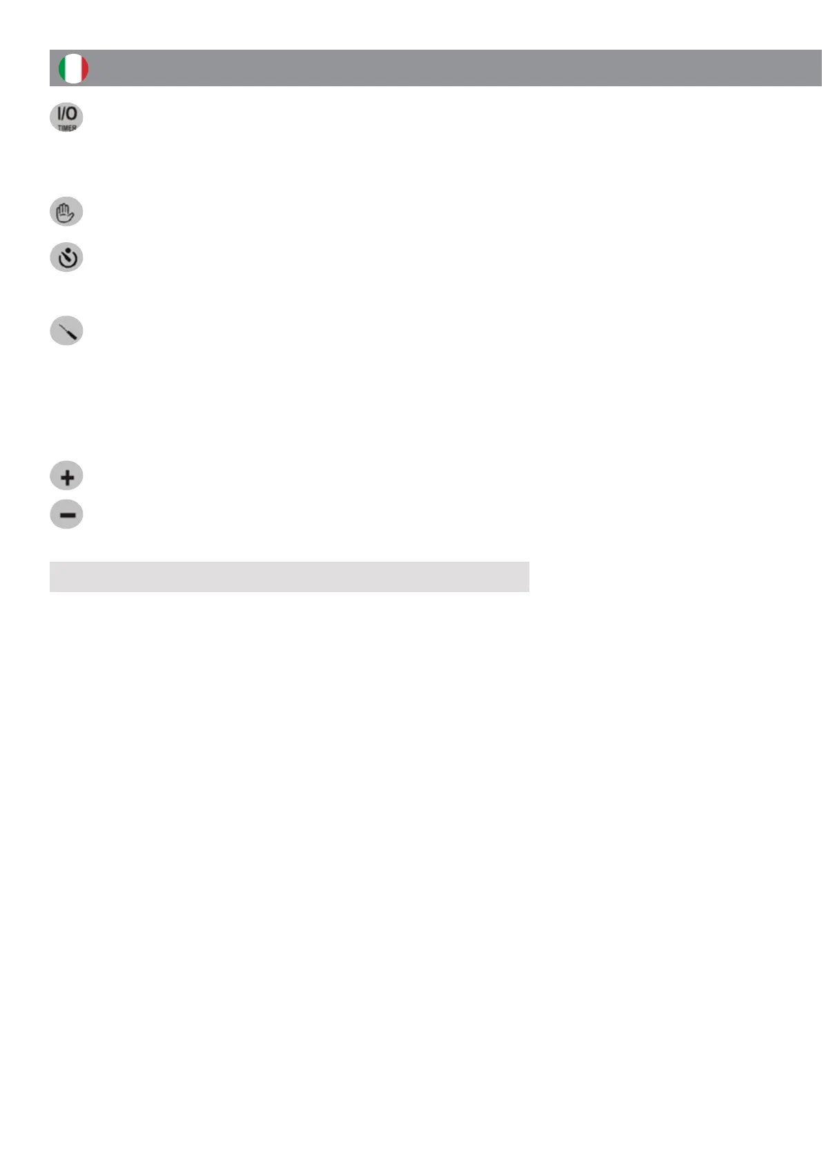 Premere a lungo per accedere al mer, il display mostrerà::. Premere + e - per impostare l’ora desiderata, il dis-