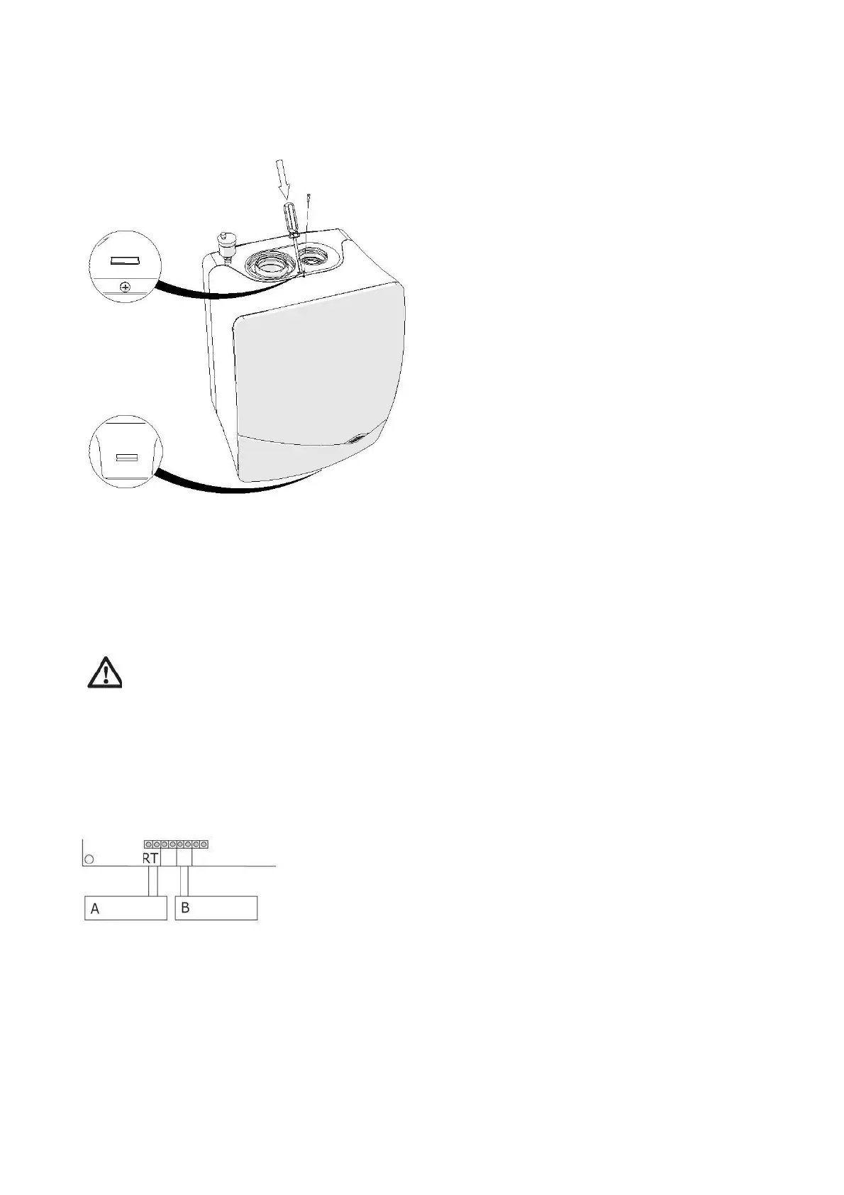 Connect the room thermostat (A) and, if present, the outside sensor (B) to the terminal strip (see figures