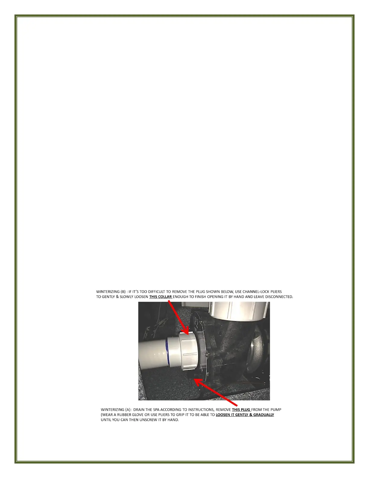 If your ECO SPA is to be transported or stored in temperatures 32º F (0º C) or lower, it is