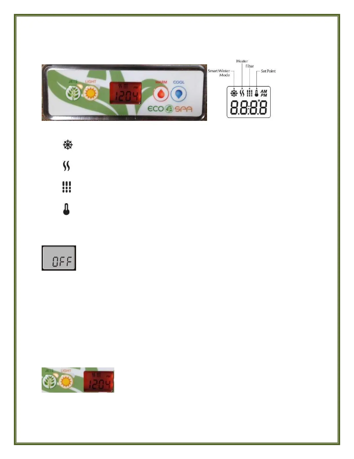 Smart Winter Mode: appears only when the spa has automatically activated its