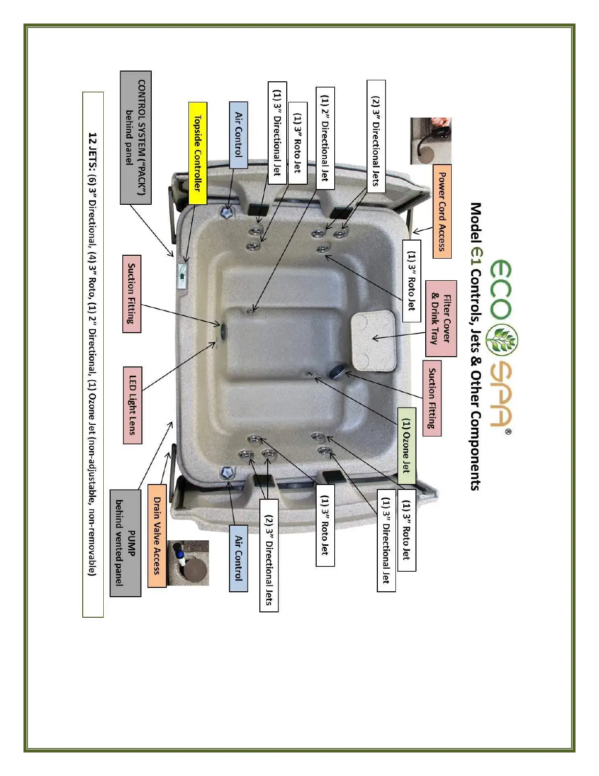Eco Spa E3 - Locations of Controls, Jets & Other Components; Model E1