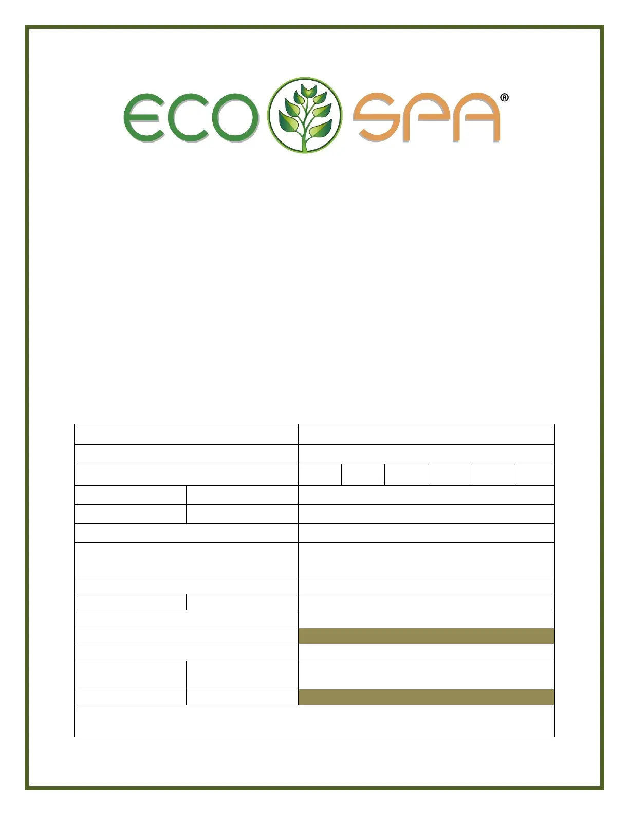 THIS CARD MUST BE MAILED TO ECO SPAS WITHIN 30 DAYS OF DELIVERY TO ACTIVATE WARRANTY.