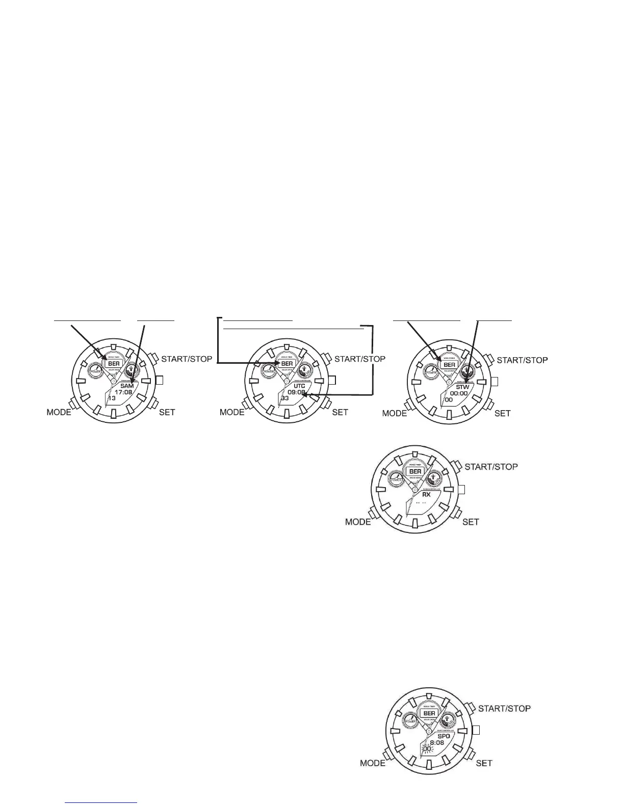 By pressing the MODE button, you reach the stop watch (“STW” appears in the lower right display and the symbol “CHR” (chronograph) is