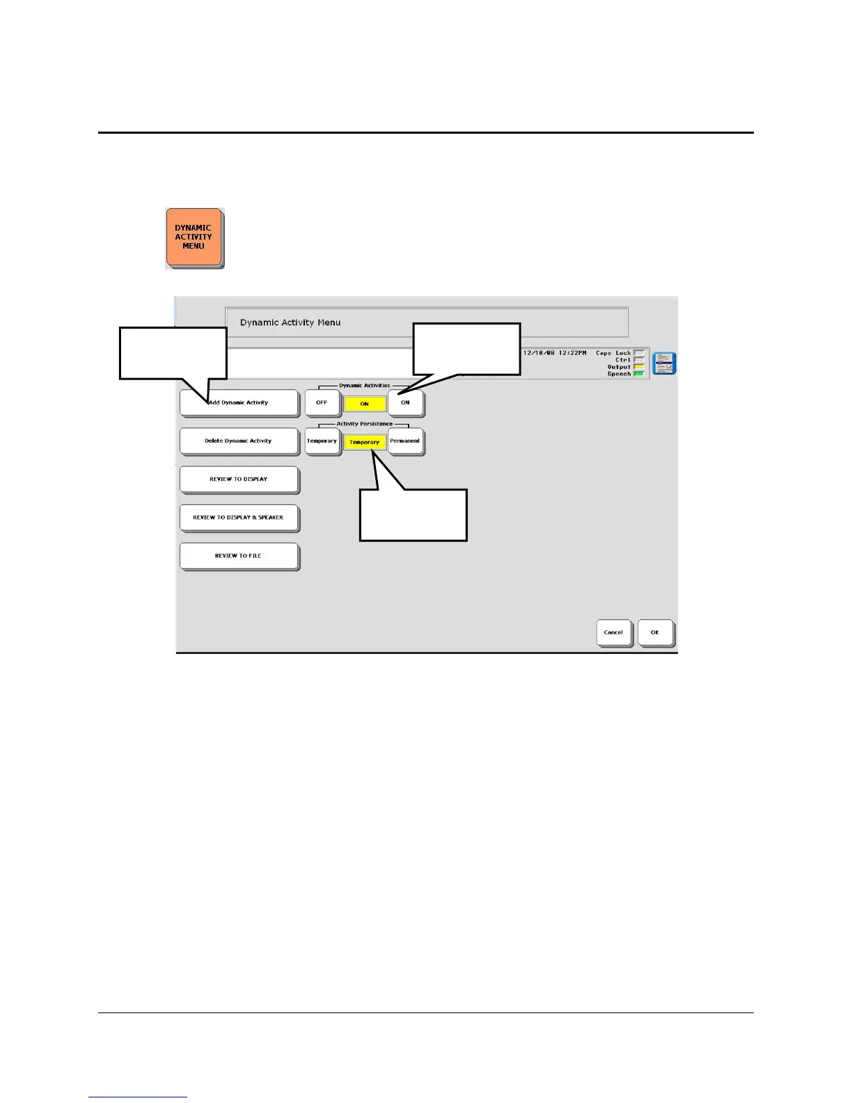 Open the DYNAMIC ACTIVITY MENU in the Toolbox.