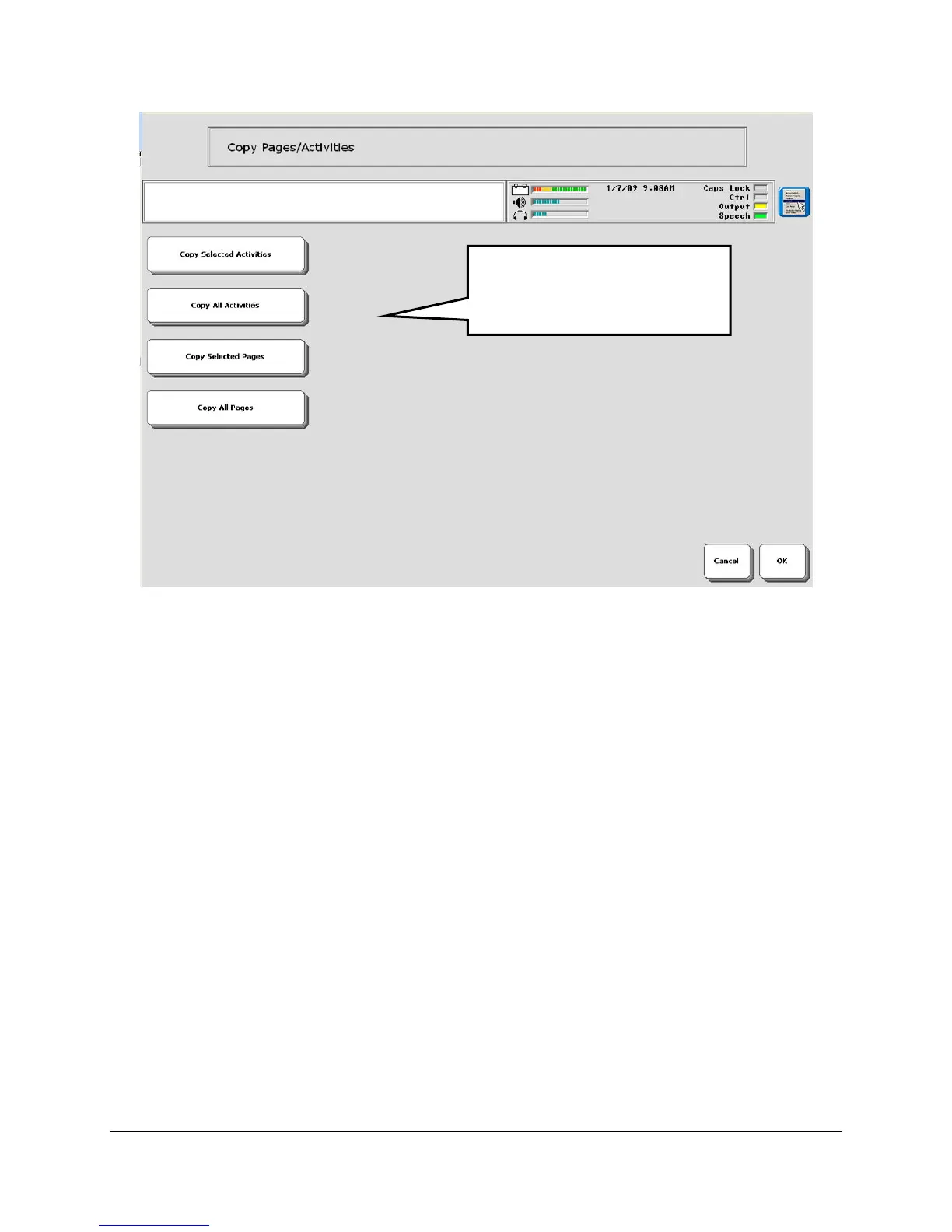 Activities or Copy All Pages option.