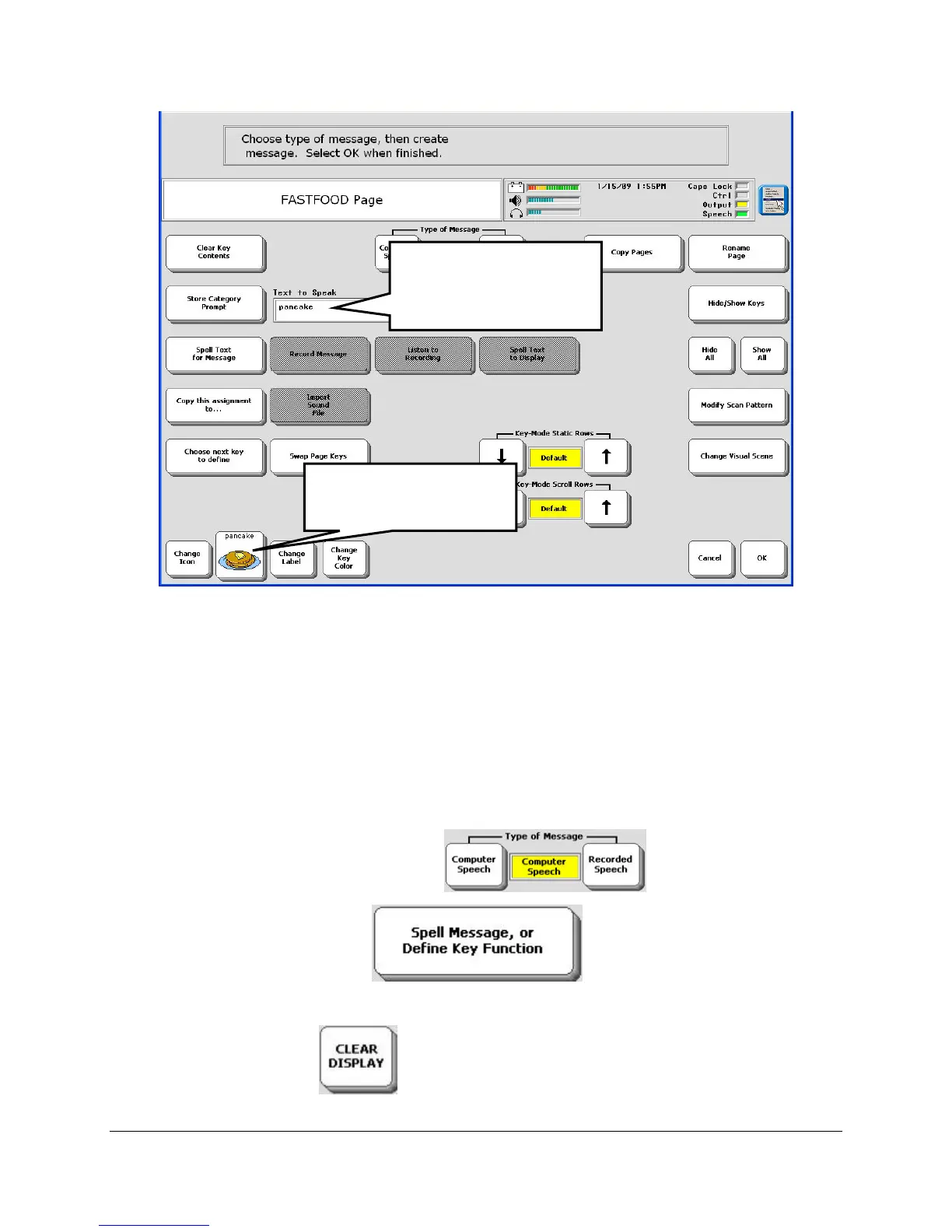 "Pancake" appears in the Text to Speak box and the pancake icon appears on the new key.