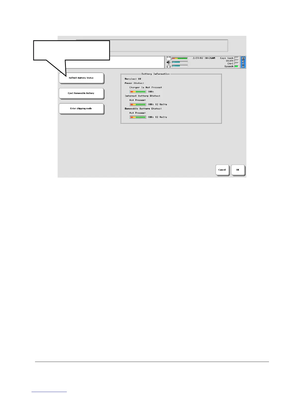 There are three LEDs near the bottom of this window. The Low Battery LED is the one in the