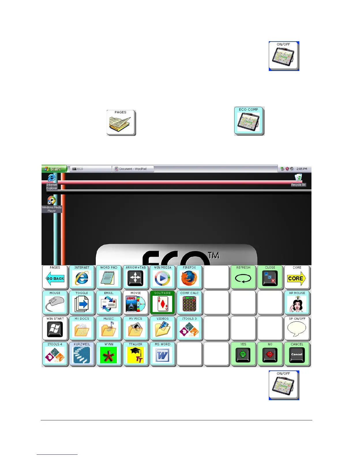 takes you to the internal computer and minimizes the Computer Programs Page.