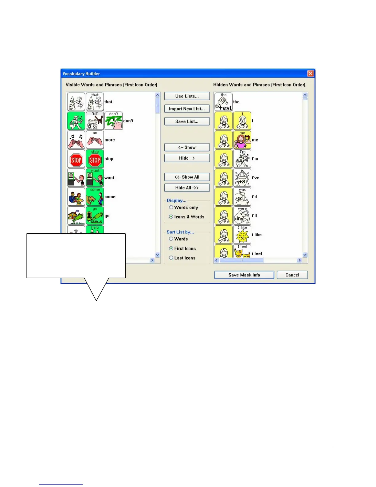 all the hidden words and phrases. You can manipulate the lists by using the functions in the