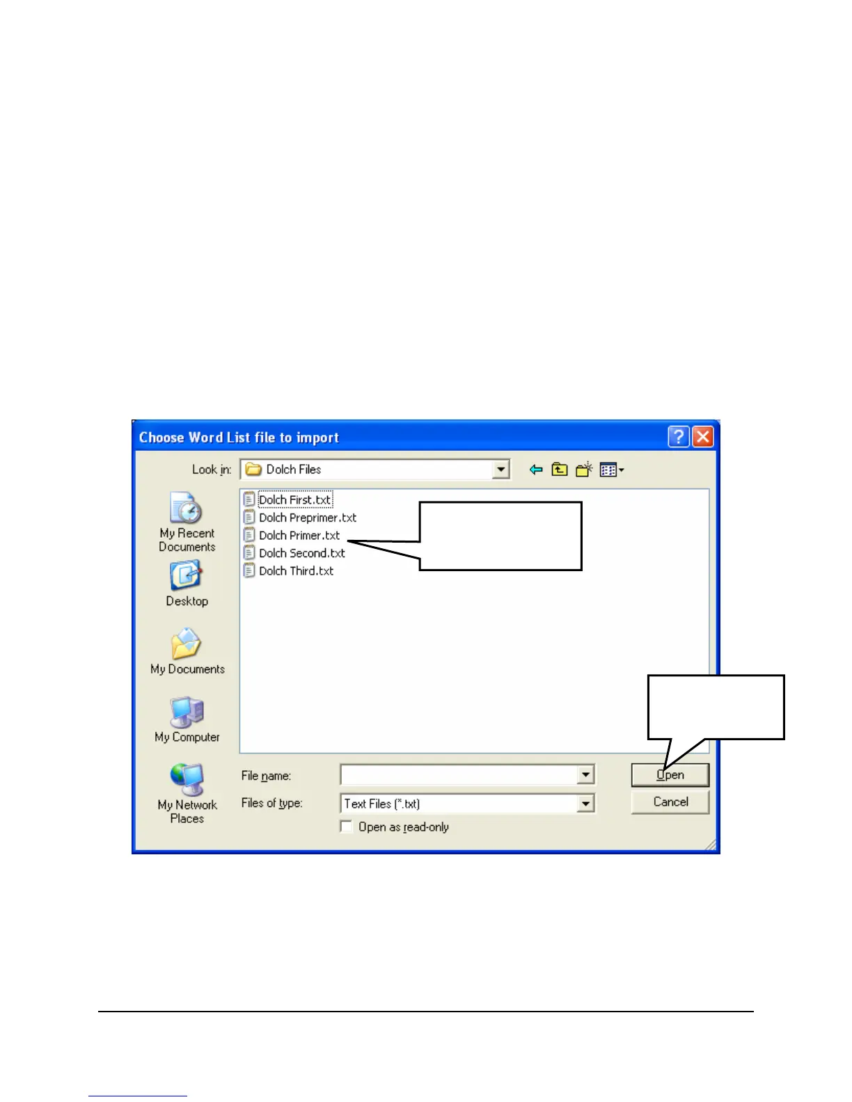 Open button will import the file. The imported file then joins the others in the Choose Word