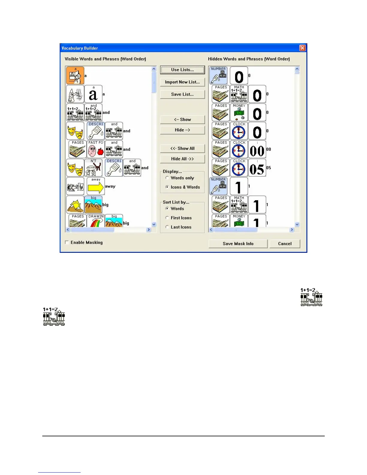is part of the CORE vocabulary; the others are on special pages or in activities.