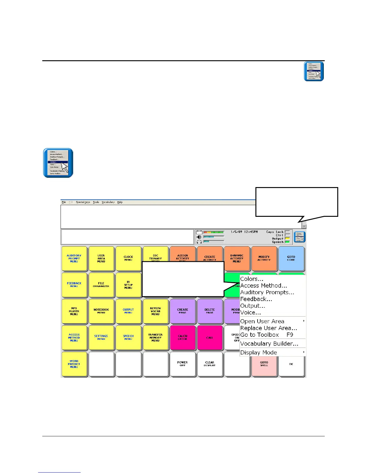 This mini-menu will be of most benefit to the AAC team and device programmers. The menu