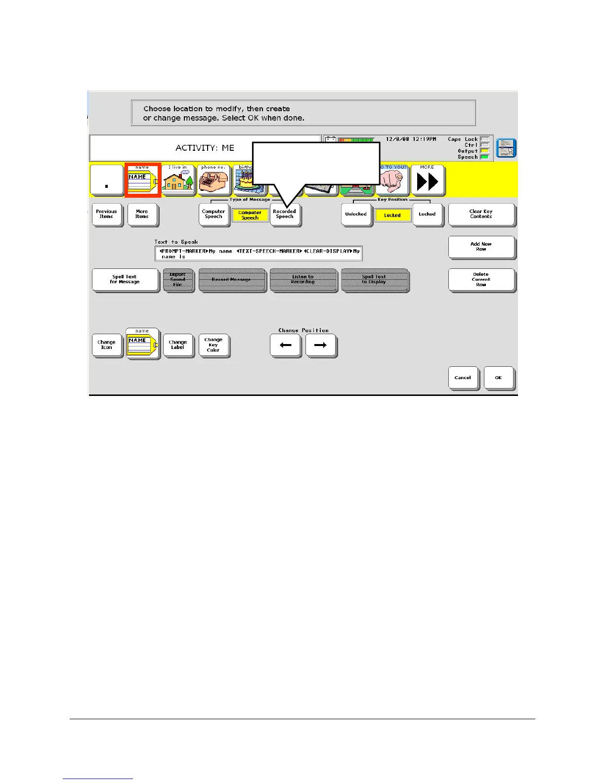 4. Change the Type of Message box to Recorded Speech