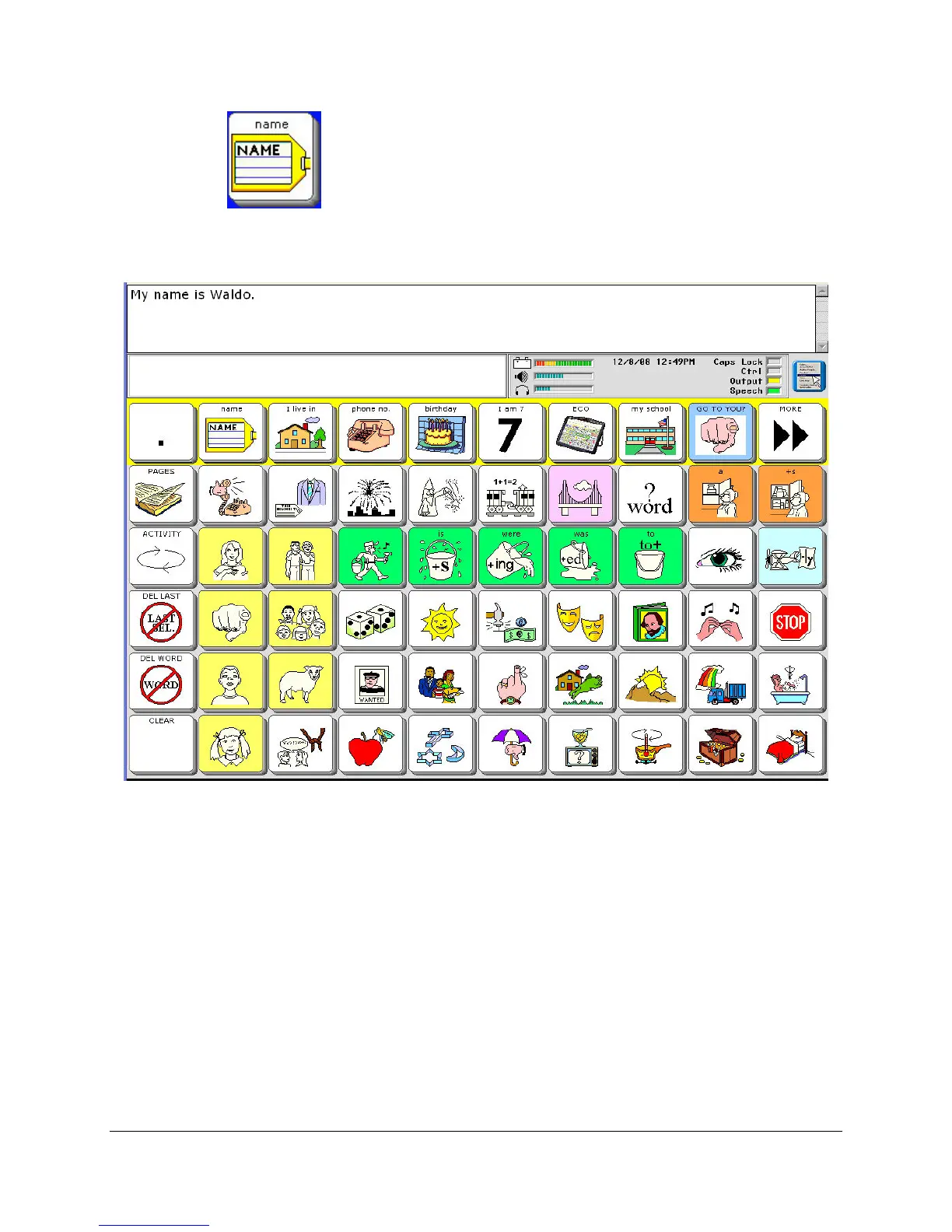 You see "My name is Waldo" in your Text Display Area and you hear your device speak, "My